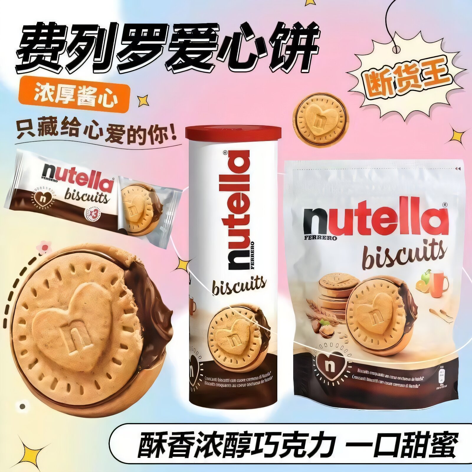 德国费列罗nutella进口零食品能多益榛子巧克力夹心爱心曲奇饼干