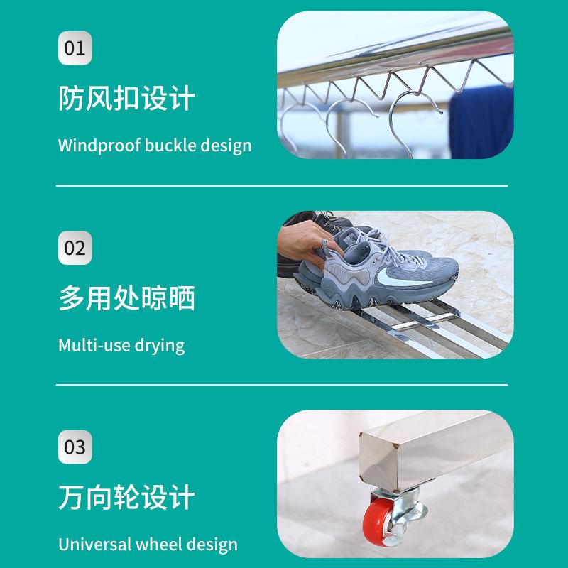 304不锈钢晾衣架落地阳台家用户外可移动晒被加厚加粗衣架杆防风