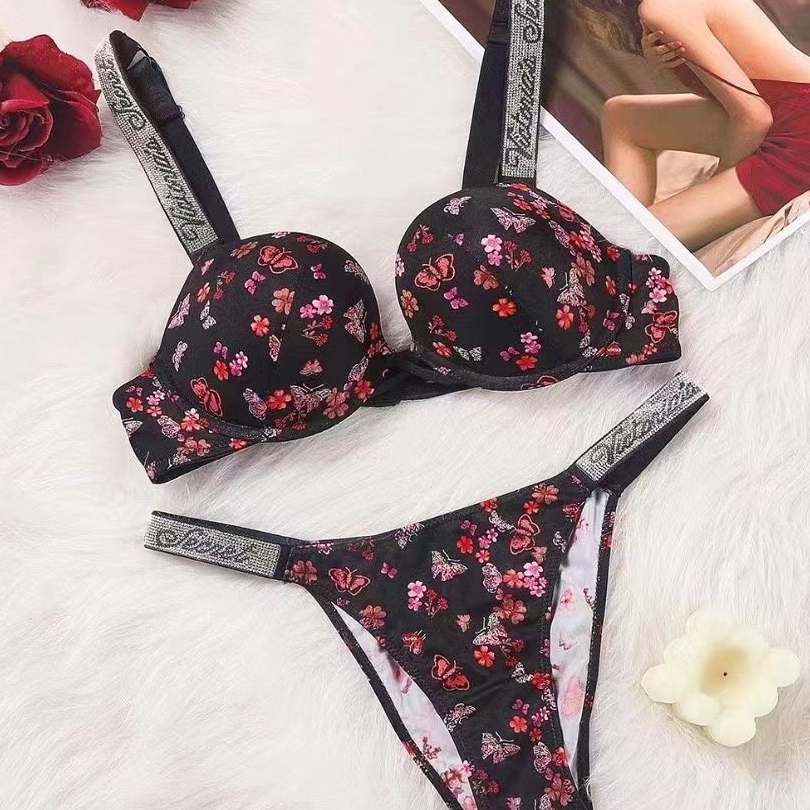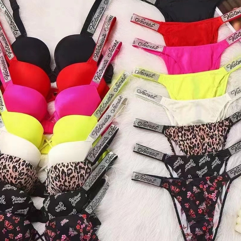 维多利亚性感字母时尚内衣女小胸聚拢无钢圈防下垂调整型文胸套装