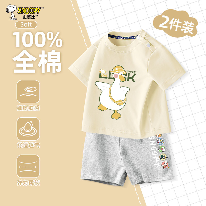 史努比男童夏装套装2026新款儿童夏季短袖衣服酷痞帅宝宝纯棉童装
