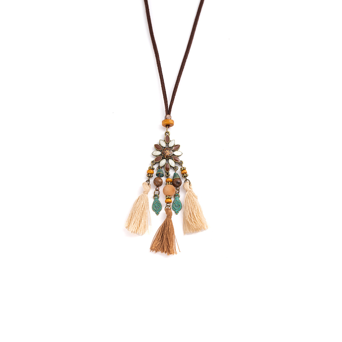 古风编织流苏蝴蝶环形吊坠项链 波西米亚复古民族风个性毛衣链女