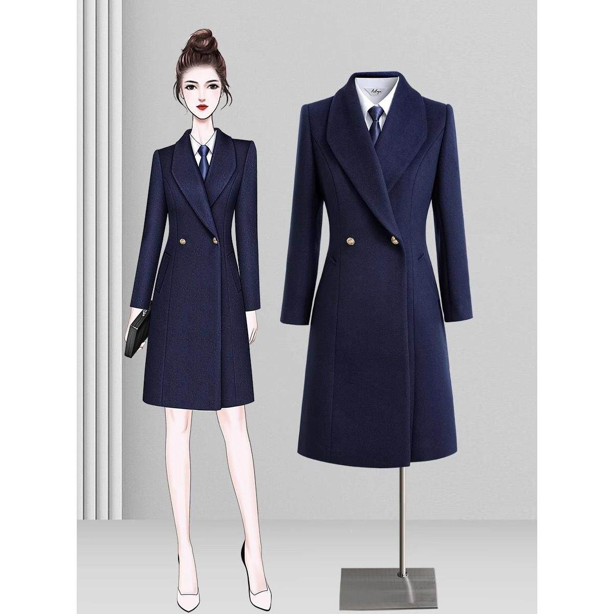 呢子大衣女中长款加棉酒店前台接待行政客服毛呢外套职业装工作服