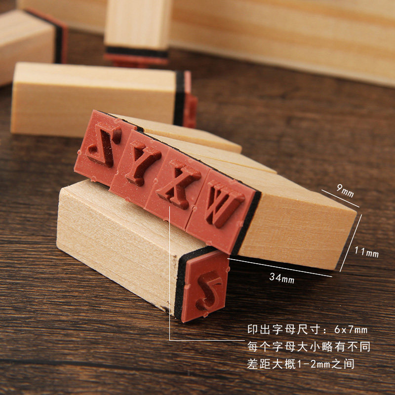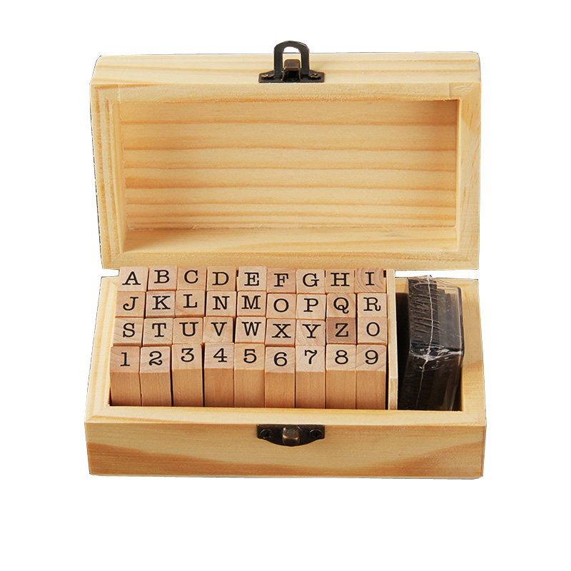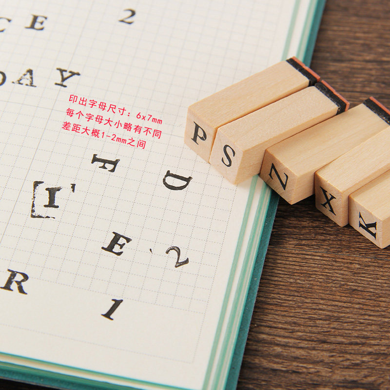当然基础手帐英文木质印章套盒装36枚英文字母数字手账印章带印泥