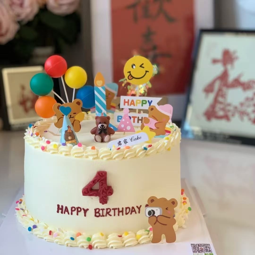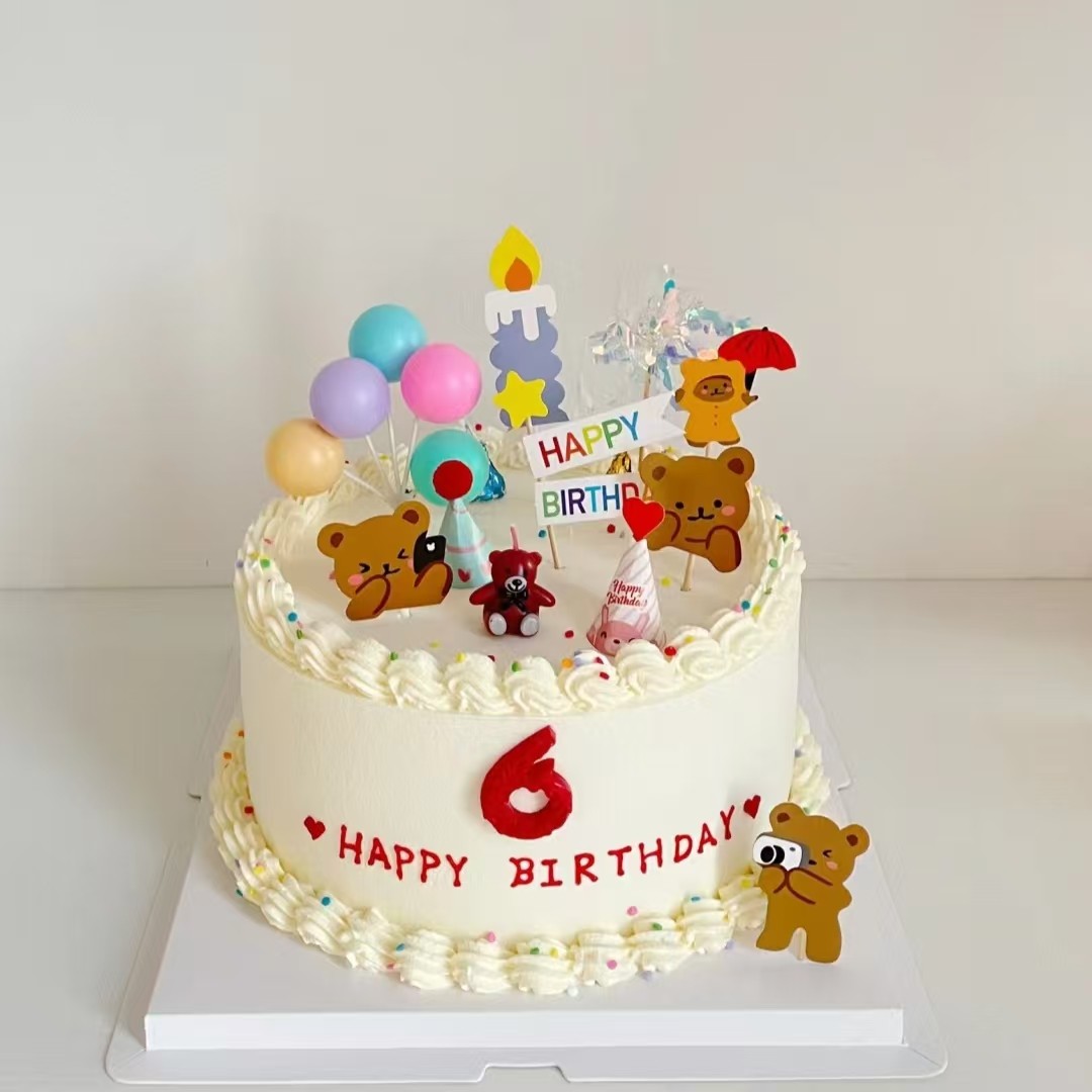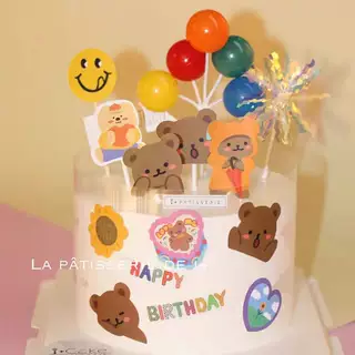 网红韩式ins卡通趴趴熊插牌蛋糕装饰生日快乐HBD插卡网红小熊插件