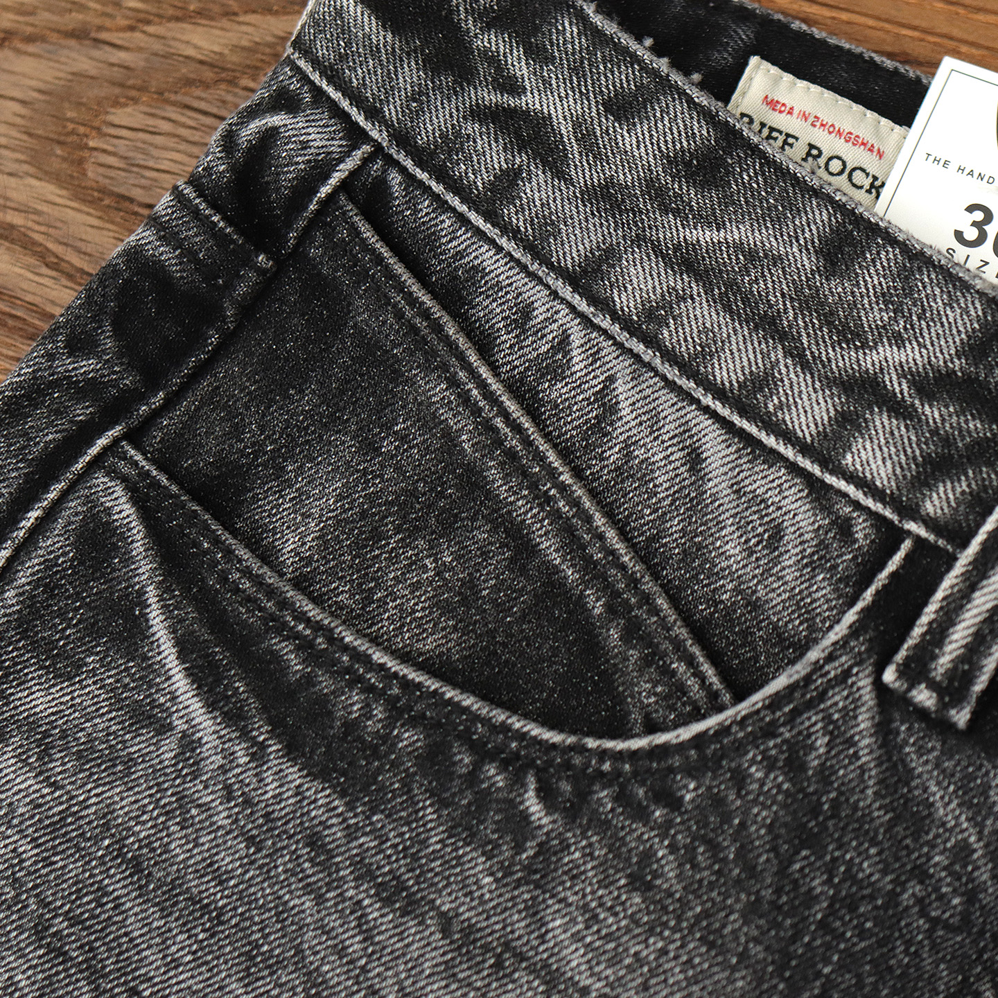 重磅纯棉男士休闲长裤美式复古烟灰黑色水洗直筒牛仔裤男秋季新款