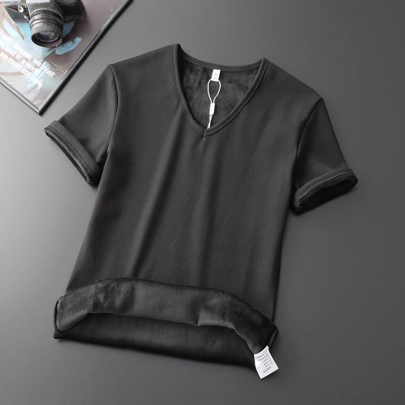 加绒加厚修身圆领短袖T恤