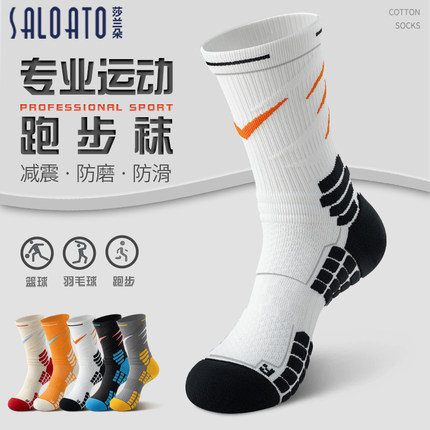 马拉松专业跑步袜子男款长筒毛巾底徒步登山长跑羽毛球专用运动袜
