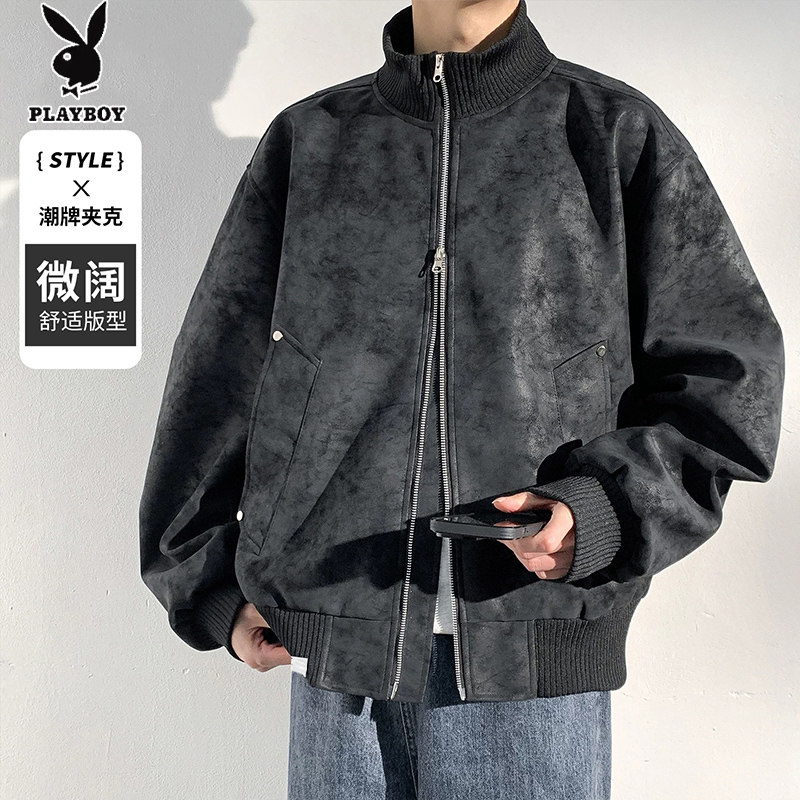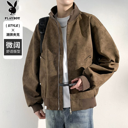 花花公子美式复古男士外套冬季加厚立领高级大码皮衣春秋休闲夹克