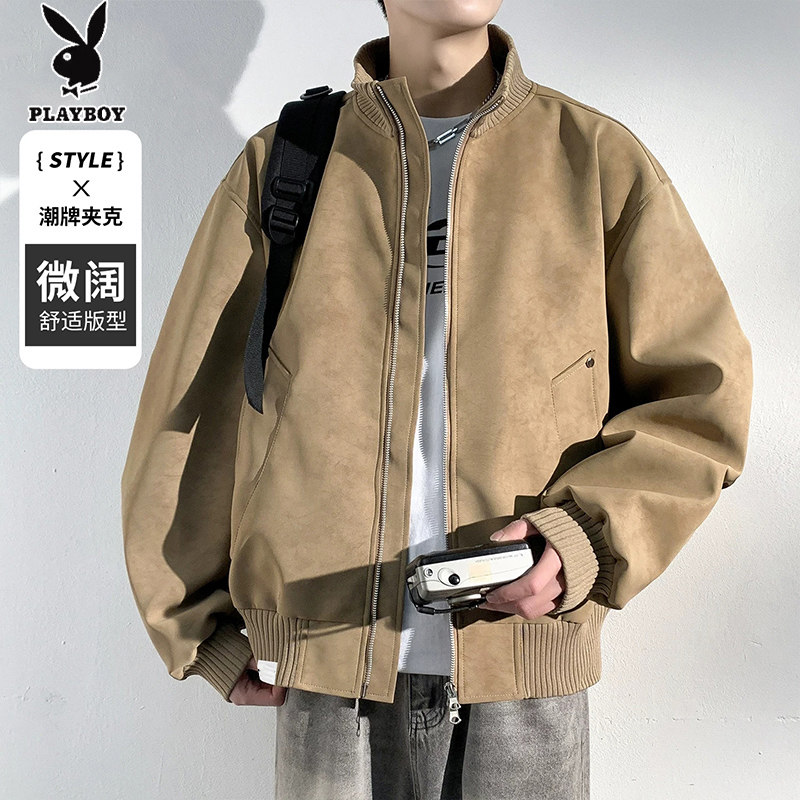 花花公子男士春秋季立领大码夹克