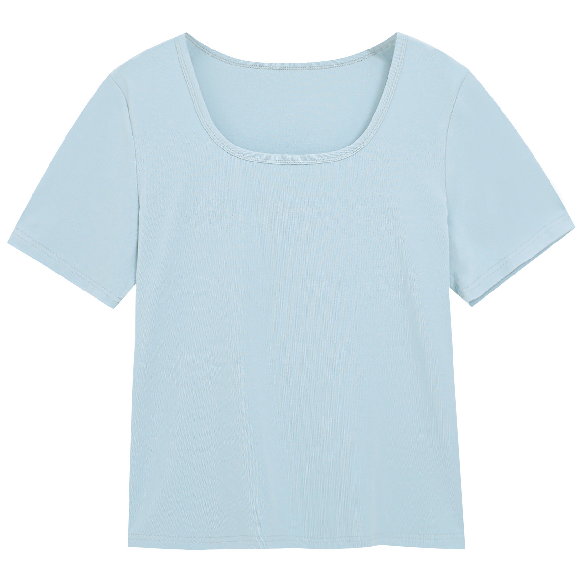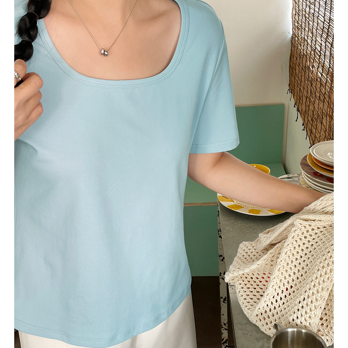 大码女装夏季方领正肩独特漂亮t恤短袖胖mm显瘦遮肚子设计感上衣