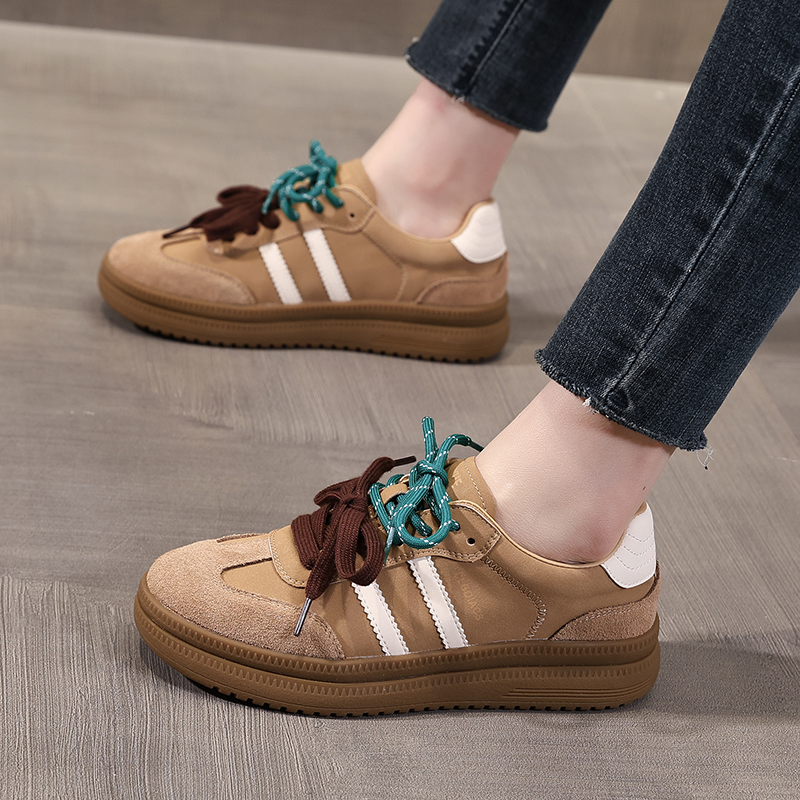 真皮软底老爹鞋休闲厚底新款春秋女鞋子2025新板鞋德训跑步小白鞋