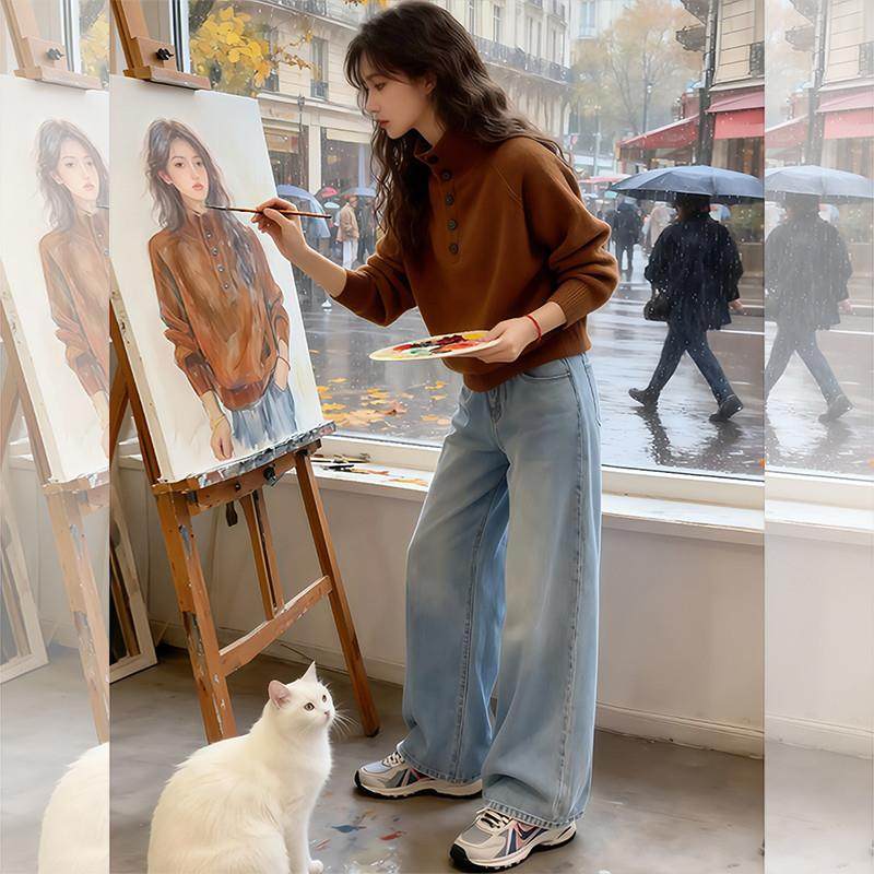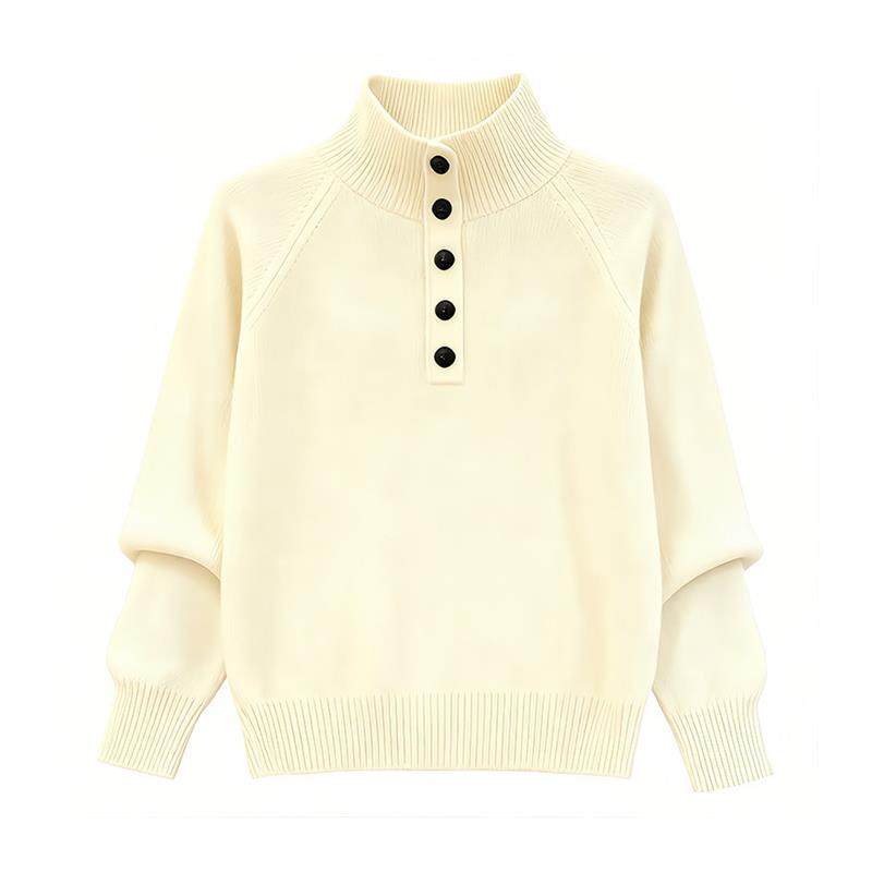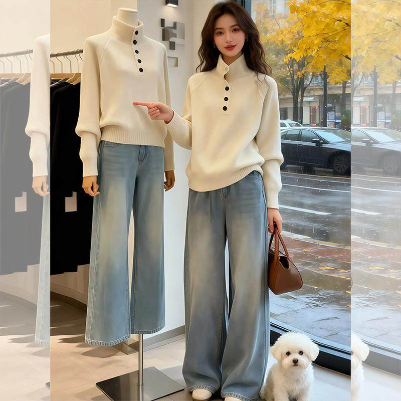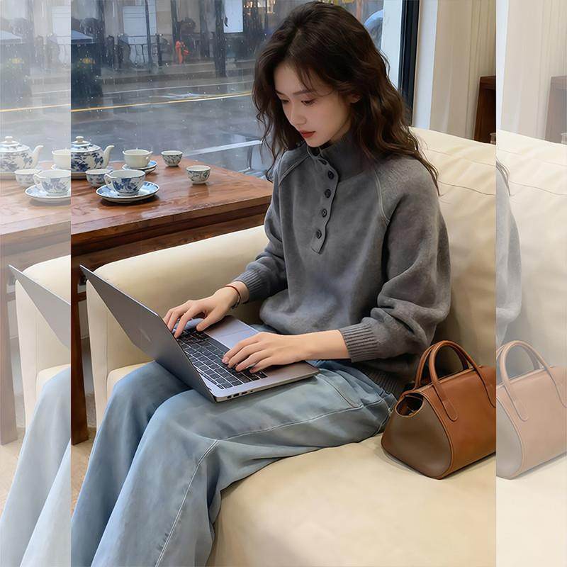 独特漂亮高领纽扣设计感灰色针织衫秋冬打底女士毛衣软糯套头上衣