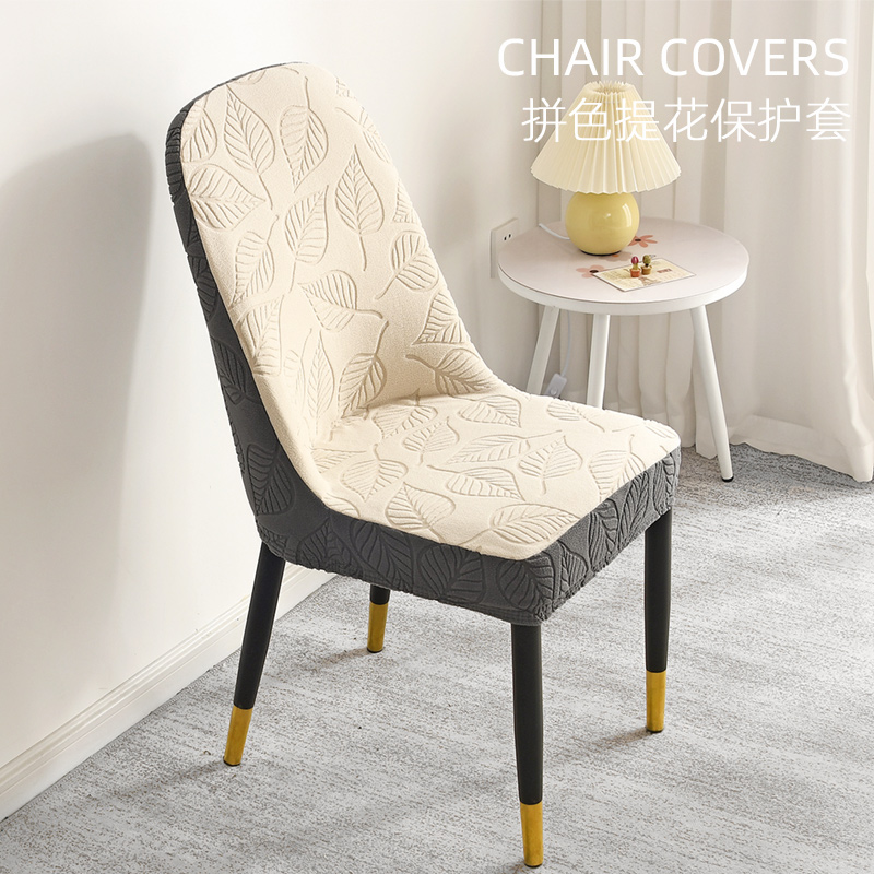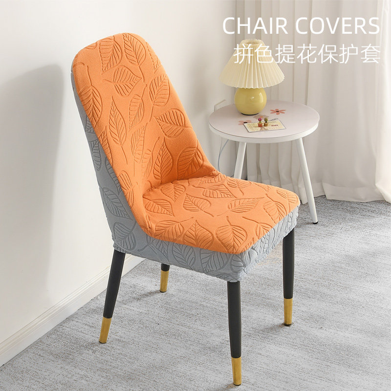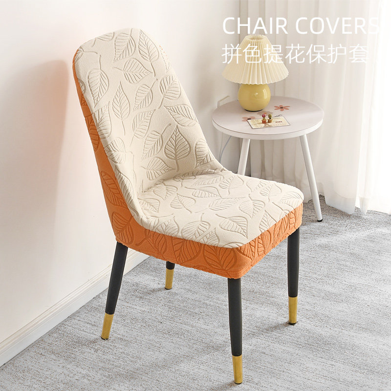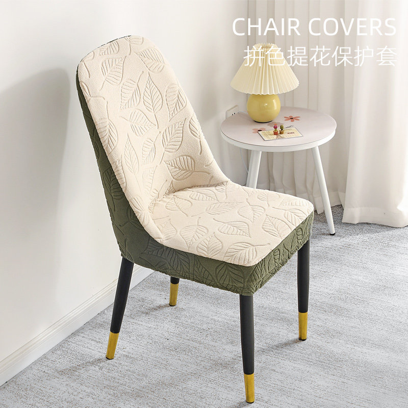 【2个装】提花拼色弧形椅子套罩弹力万能通用餐椅套凳子套高级感