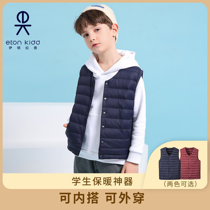 伊顿纪德男女童轻防水无领羽绒服马甲儿童装冬新羽绒背心21U903