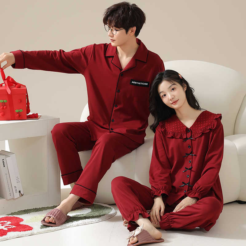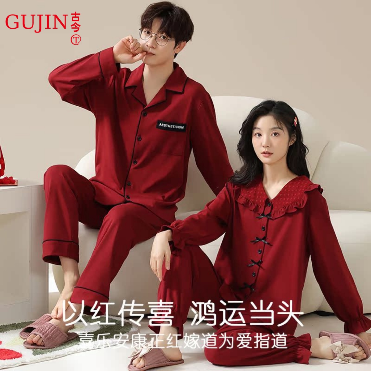 红色情侣睡衣秋冬季纯棉女款男士2024龙年本命年结婚新婚喜庆