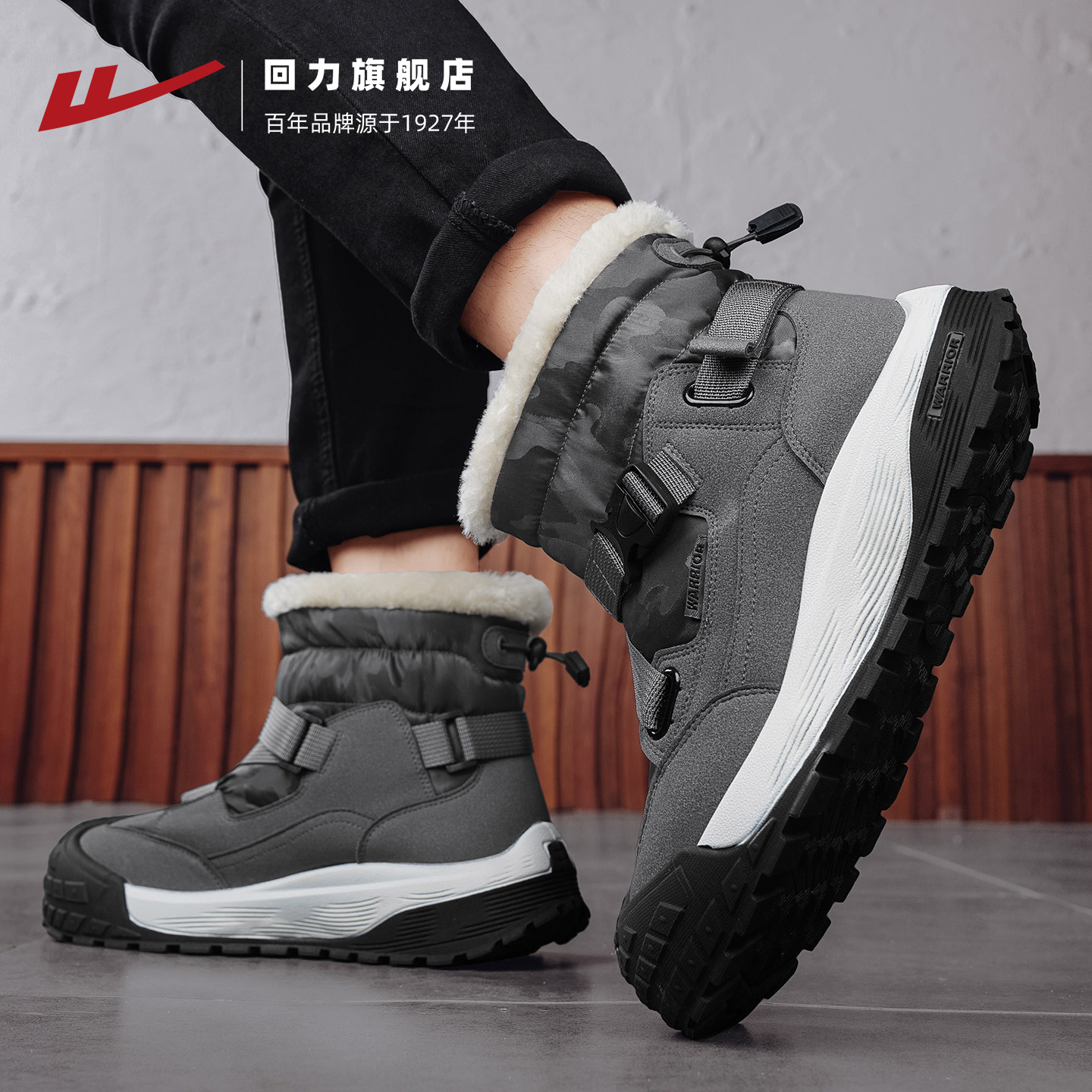 回力厚底雪地靴男款2025新款冬季加绒加厚保暖防寒免系带东北棉鞋