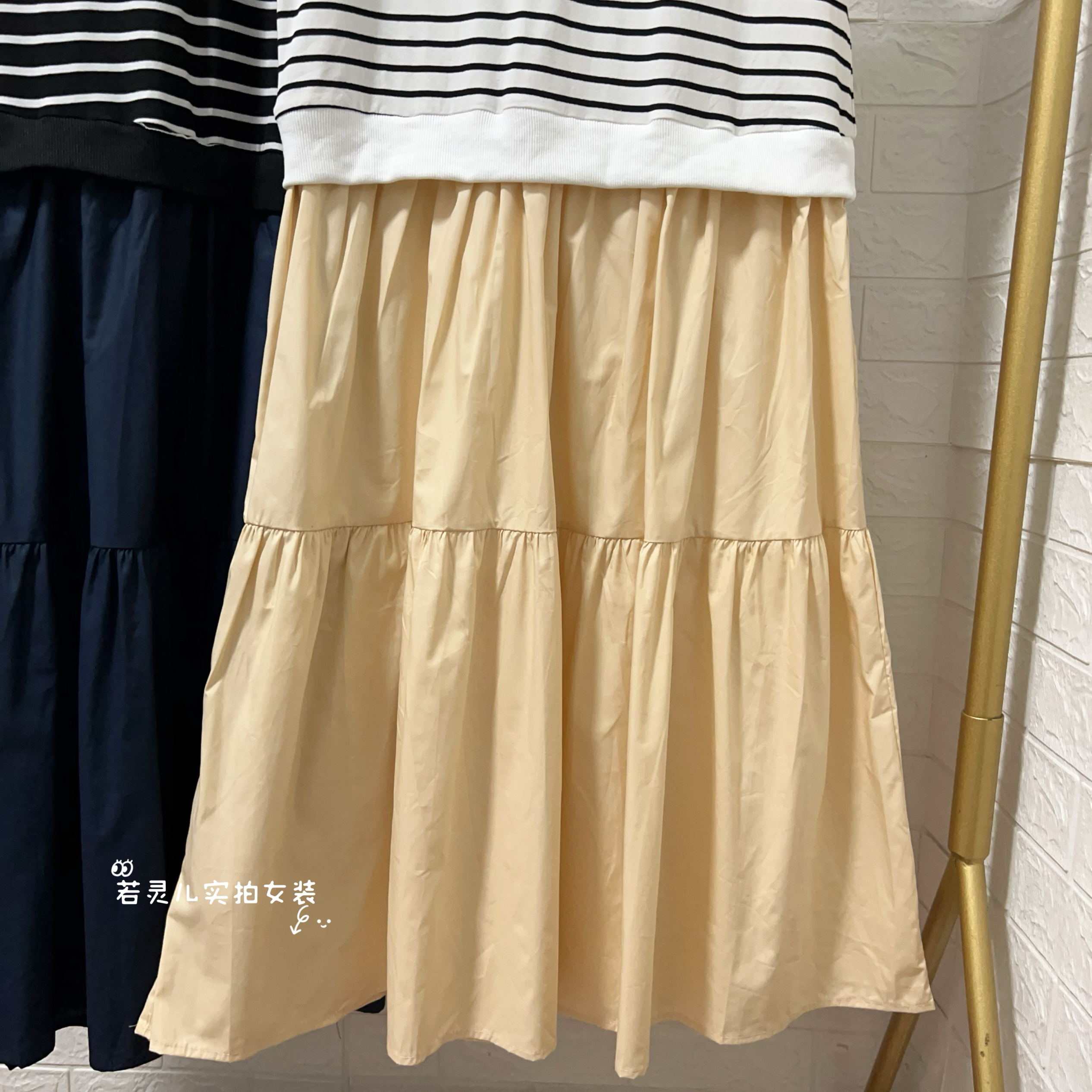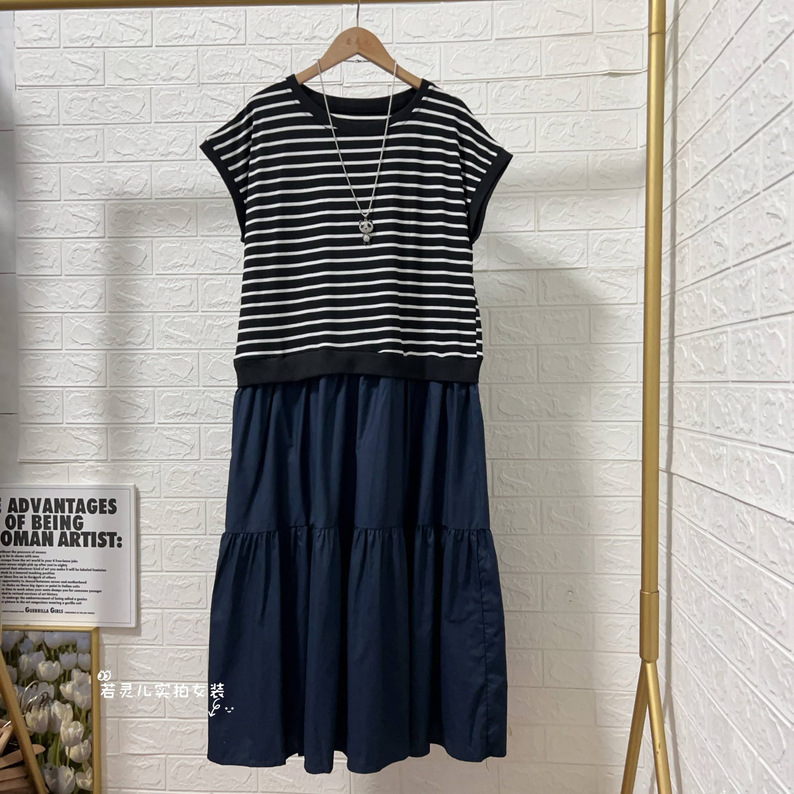 夏季新款韩版条纹短袖T恤连衣裙宽松休闲显瘦女士长裙子
