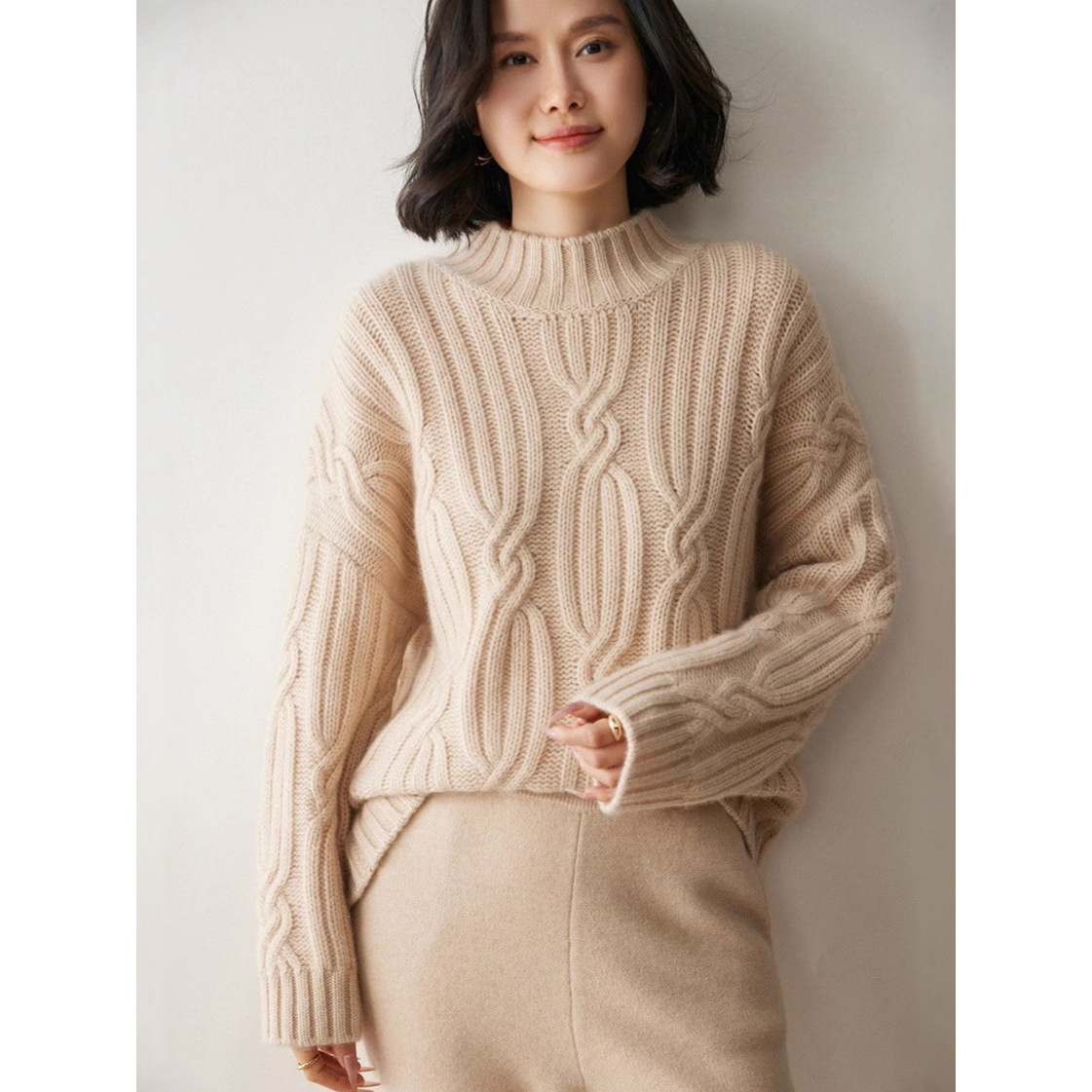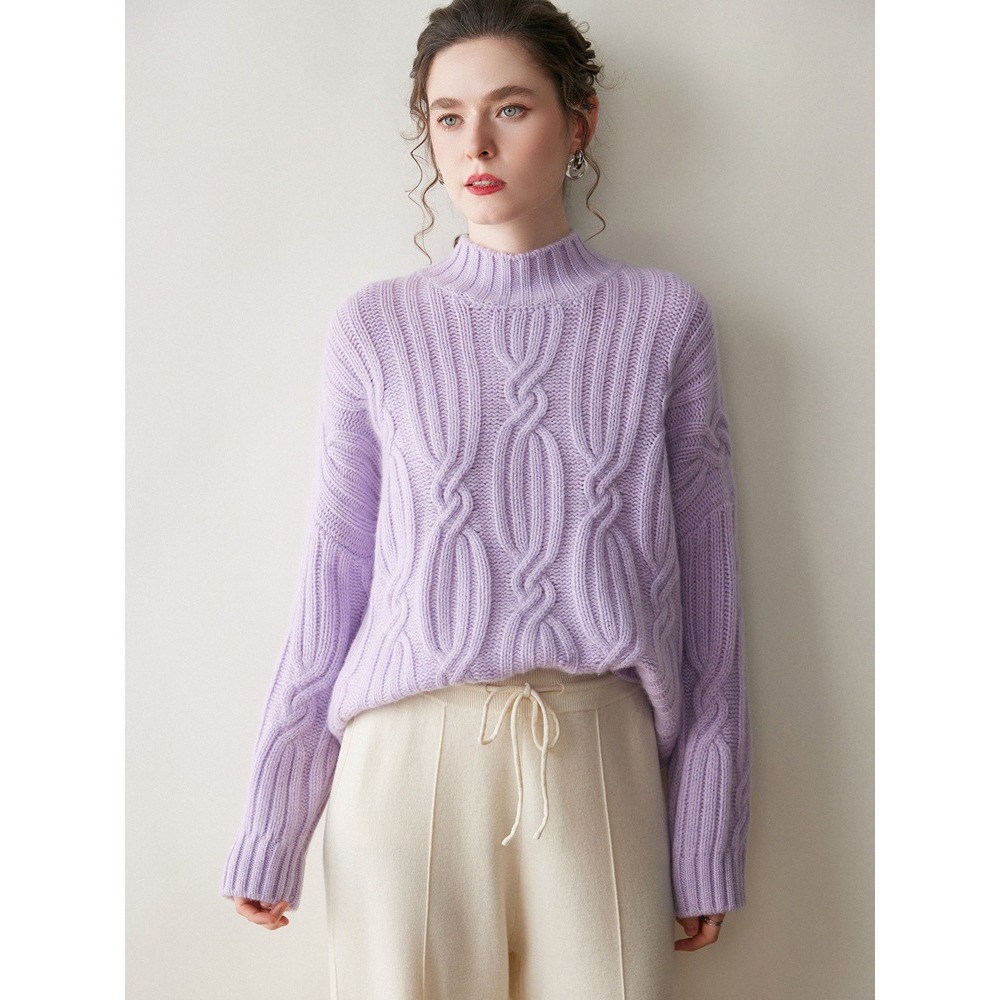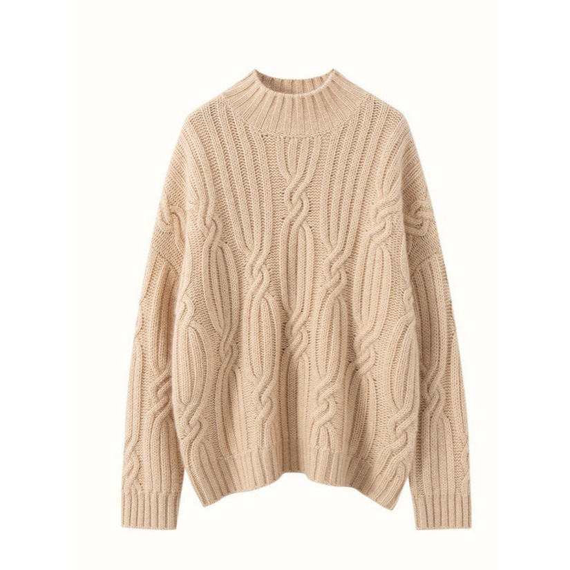加厚秋冬新款毛衣重磅绞花半高领加厚宽松慵懒风山羊绒衫女毛衣