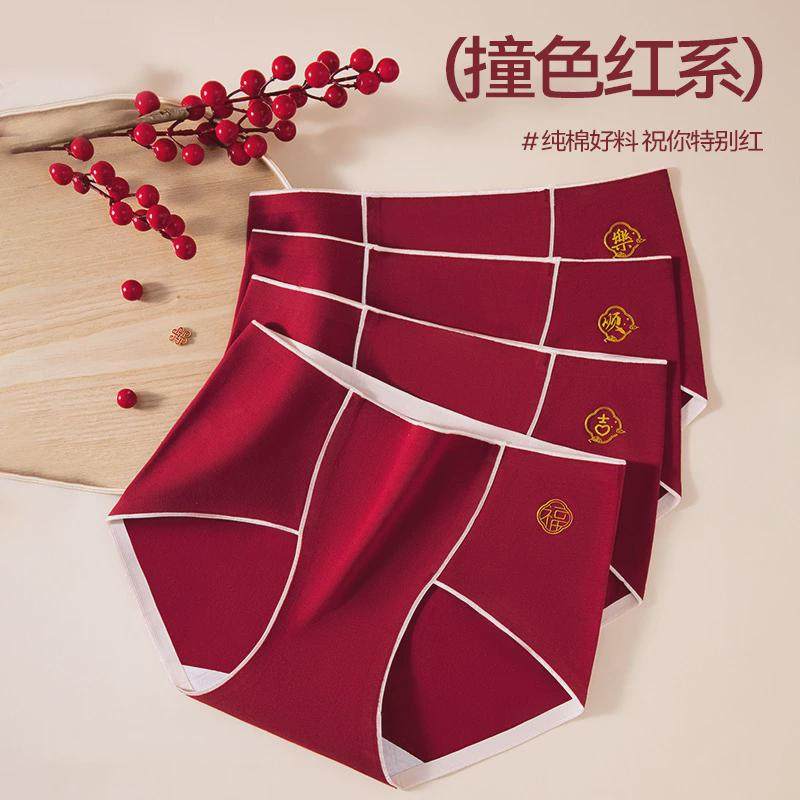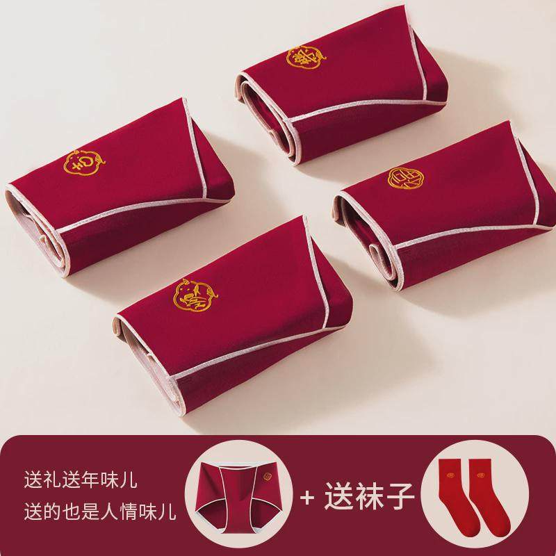 欧迪芬红内裤女士本命年纯棉2025蛇年结婚红袜子套装无痕短裤