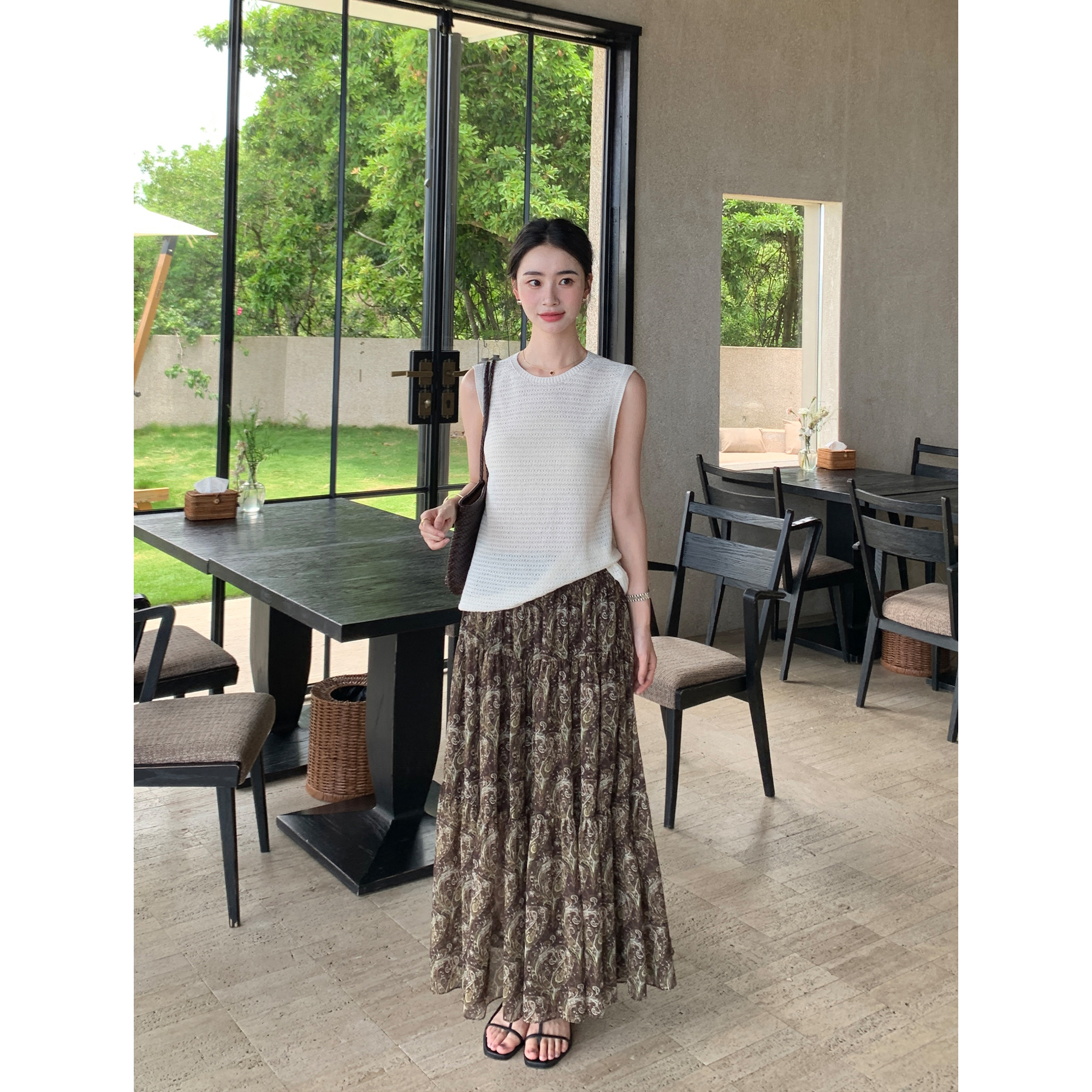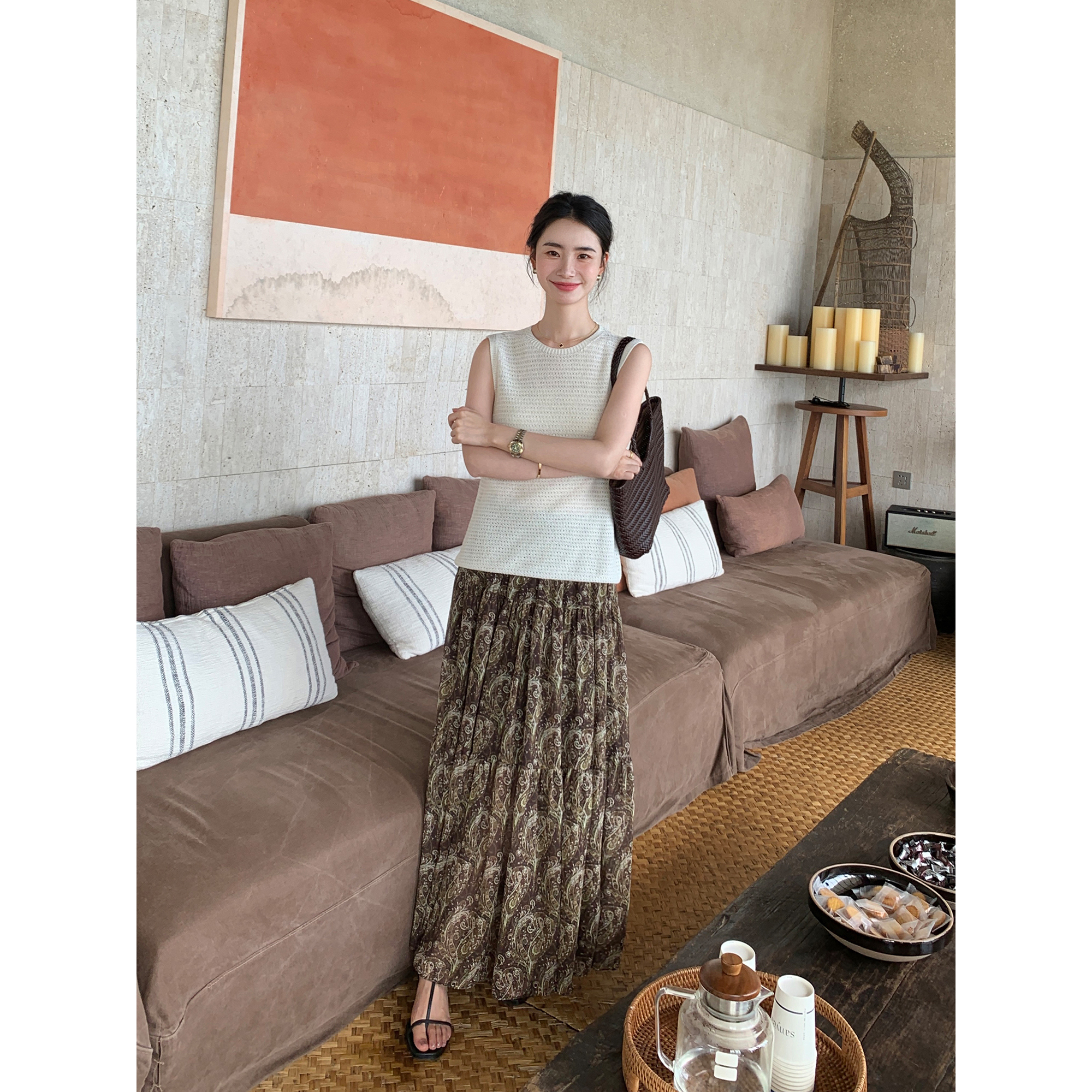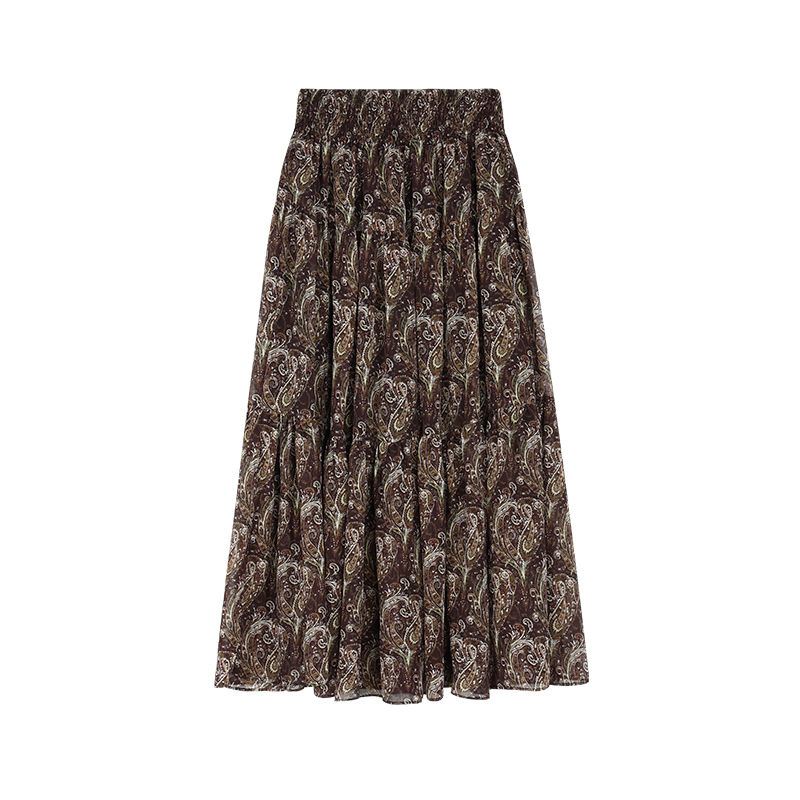 Maven Lin 高品质雪纺复古腰果花半身裙女浪漫度假风a字碎花裙子