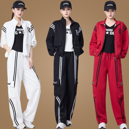 宽松裤休闲拉链外套健身曳步舞蹈服广场舞服装运动新款套装女跳舞