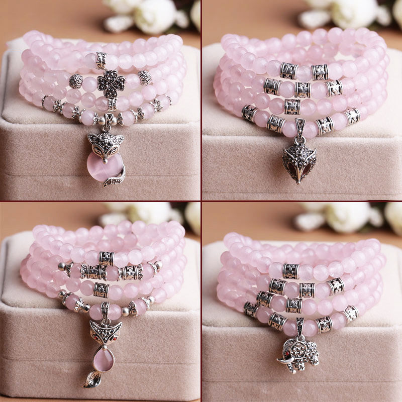 天然粉水晶散珠子半成品diy串珠手链材料手工编织饰品配件