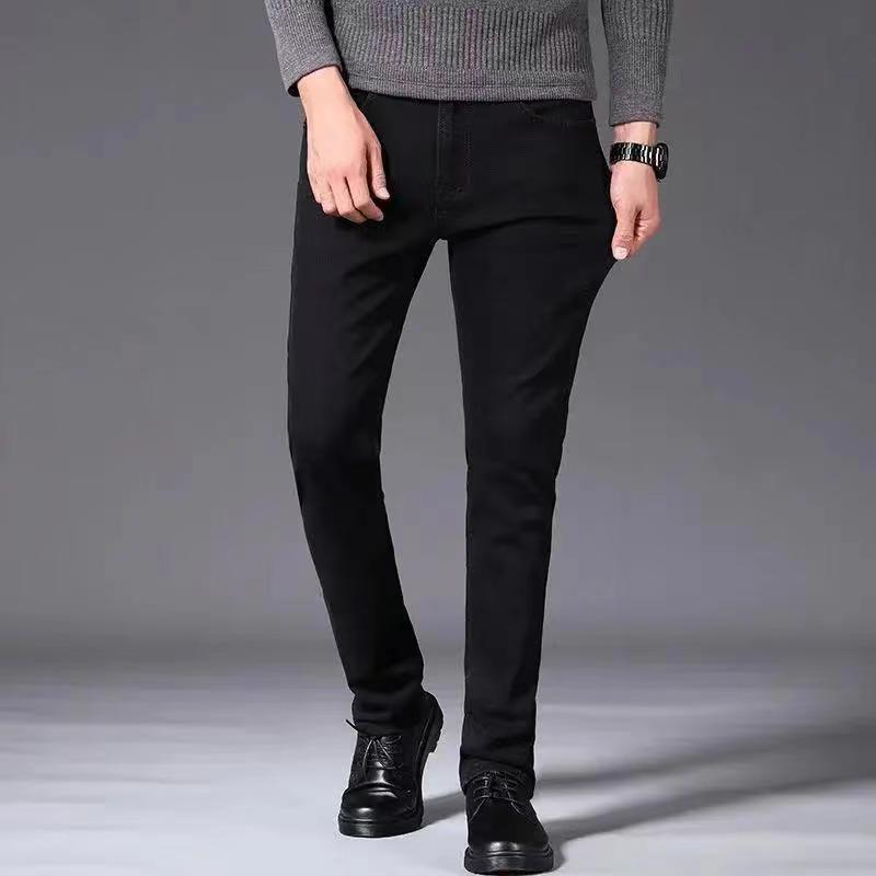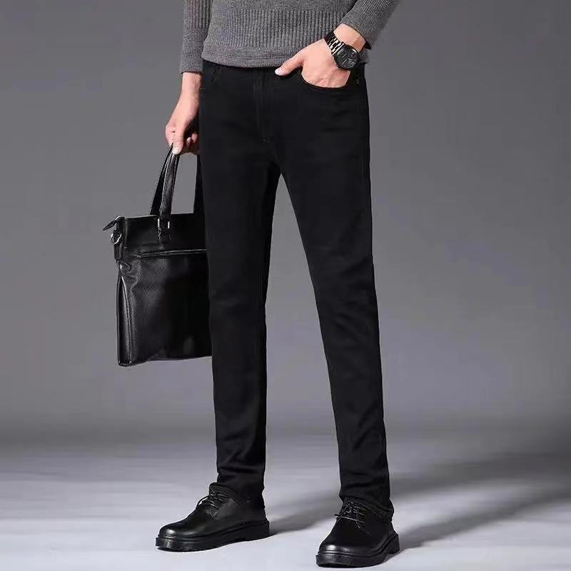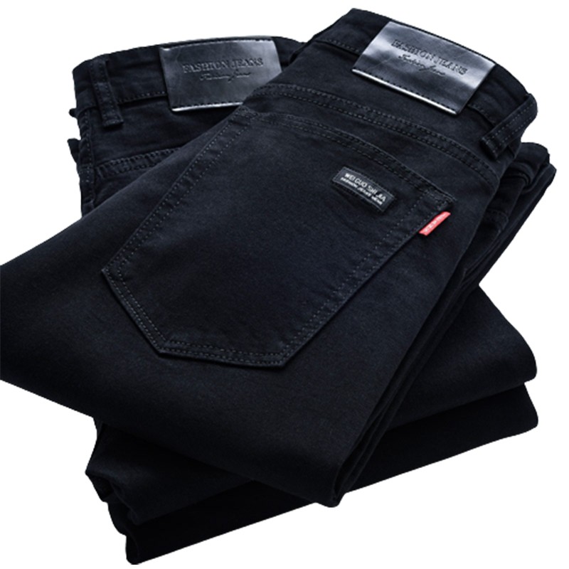 秋冬新款男士牛仔裤直筒宽松潮流弹力高腰劳保休闲纯黑色工作裤子
