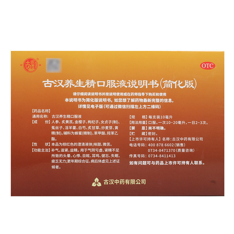 【古汉】古汉养生精口服液10ml*30支/盒耳鸣失眠头晕心悸补气