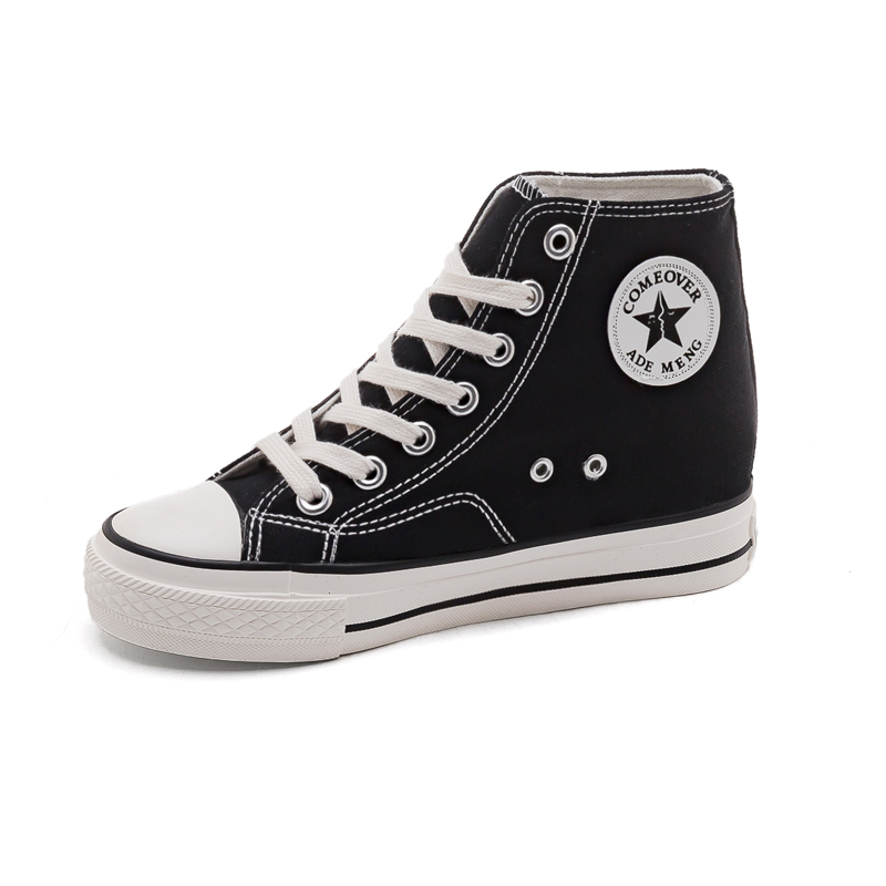 回力加绒内增高8厘米帆布鞋女秋款加棉高帮保暖布鞋厚底松糕布鞋