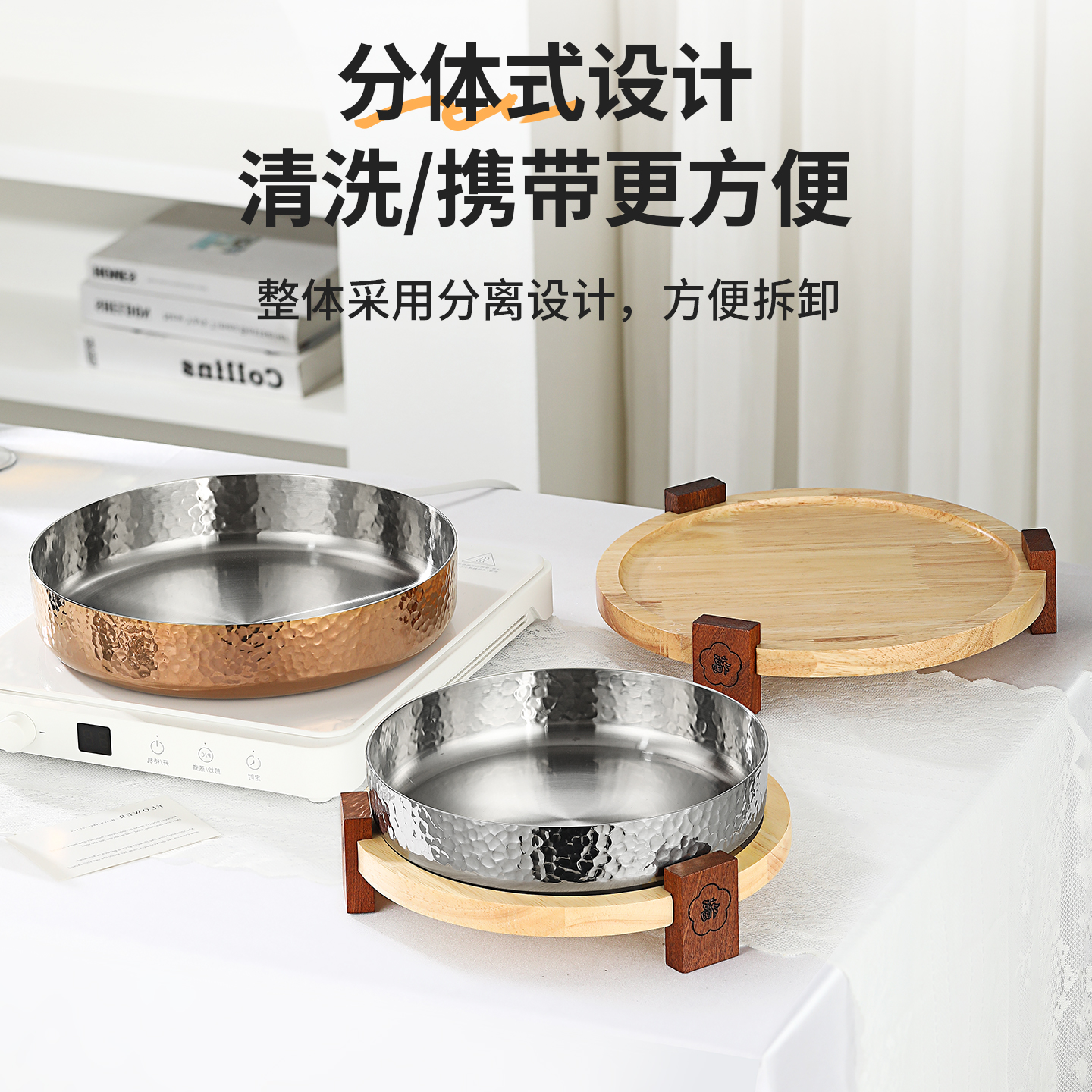加厚304不锈钢特色菜盘带木座商用川蜀冒毛肚盘酸菜鱼汤盘湘菜盆