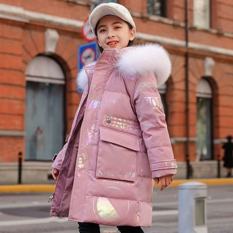 女童羽绒棉服中大童亮面免洗加绒加厚中长款外套保暖洋气冬季外套