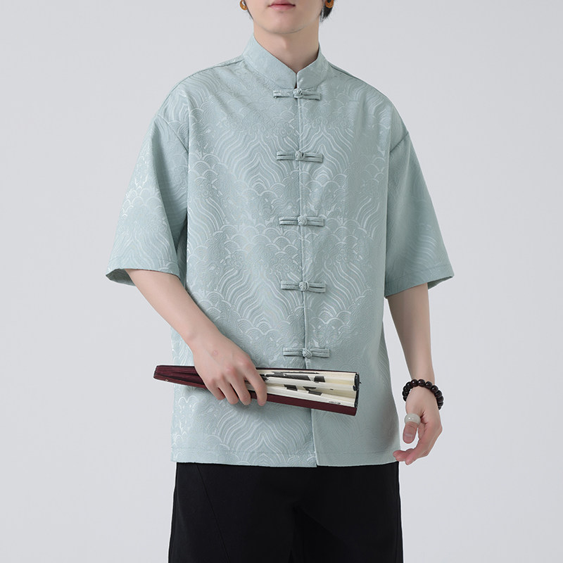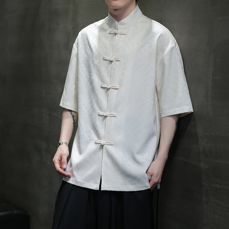 冰丝衬衫男短袖夏季薄中国风复古唐装宽松改良汉服新中式半袖衬衣