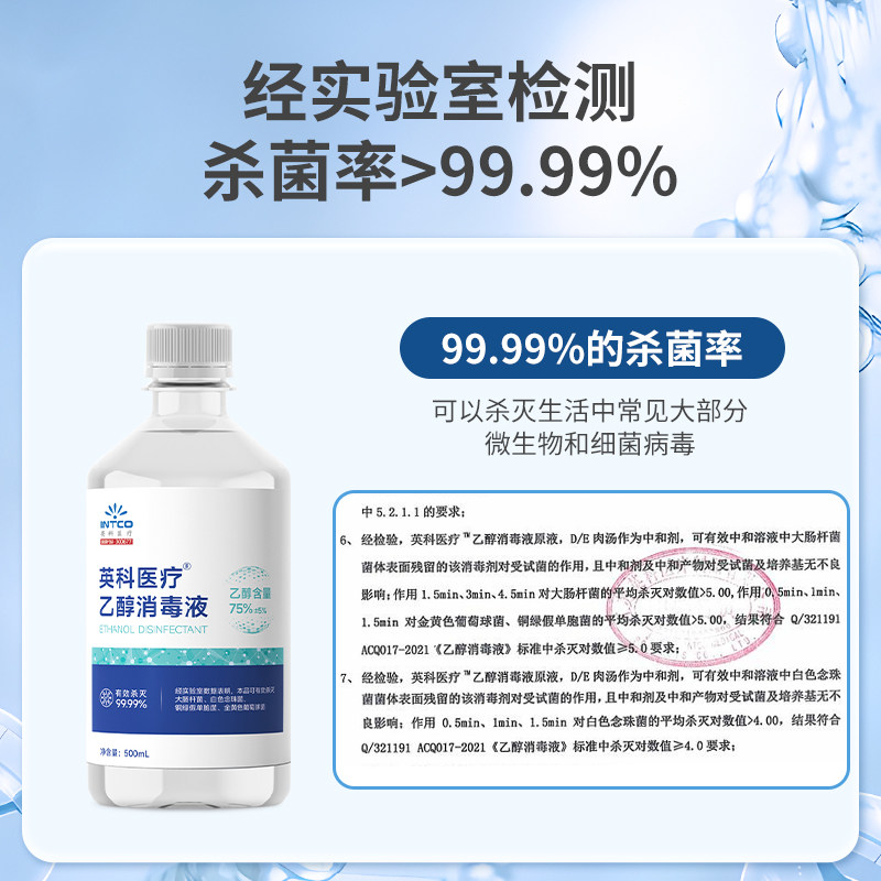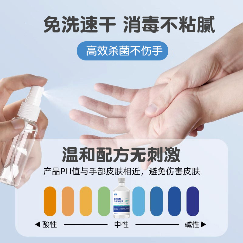 英科医疗75%度酒精消毒液喷雾医用大瓶家用免洗环境清洁杀菌500ml