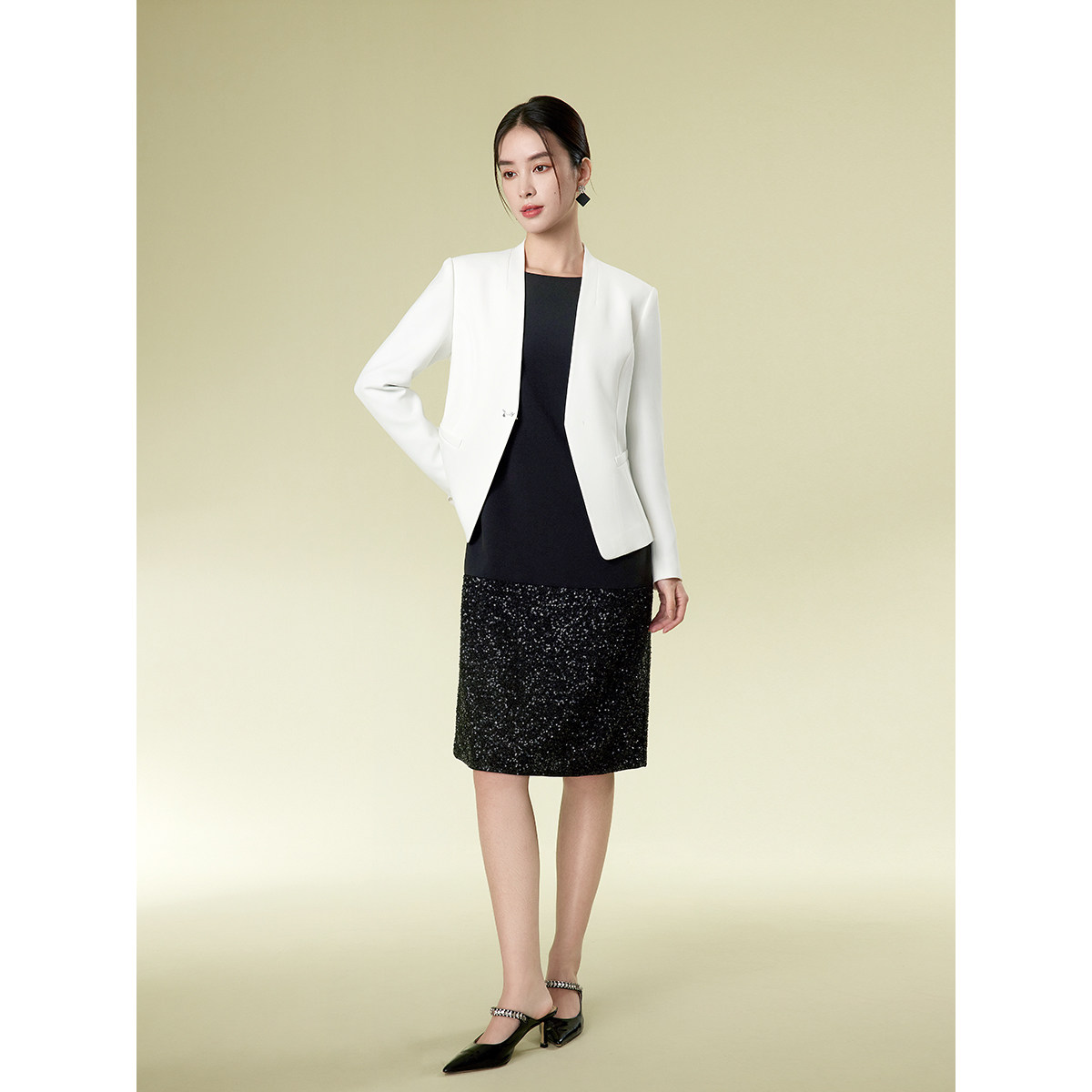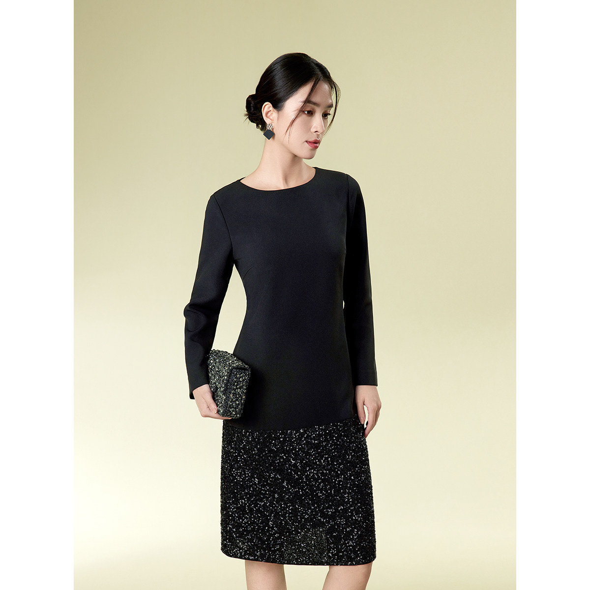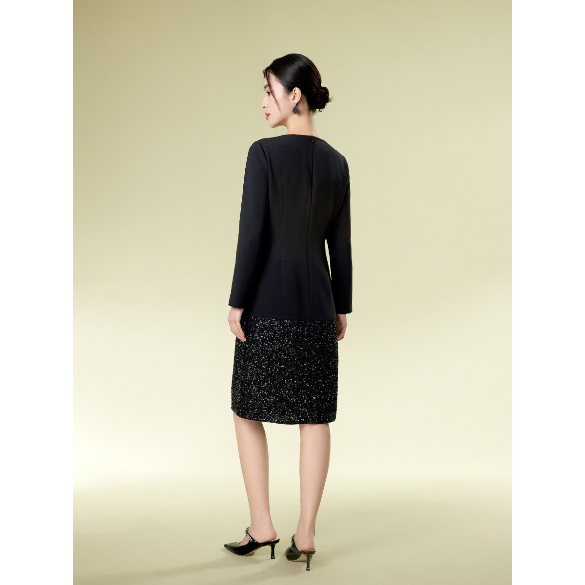 BBLLUUEE粉蓝衣橱2025秋冬小黑裙浪漫拼接珠片直筒裙细闪连衣裙女