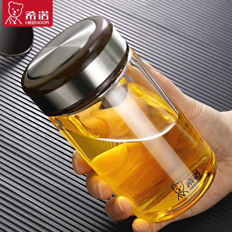 希诺玻璃杯男女便携单层加厚透明杯子家用办公水杯带盖耐热泡茶杯