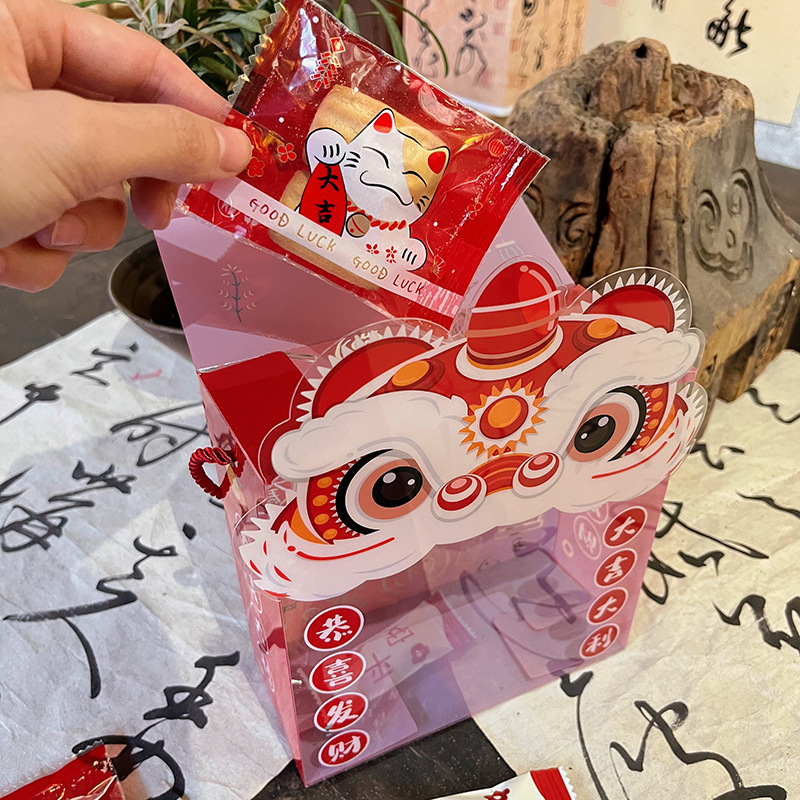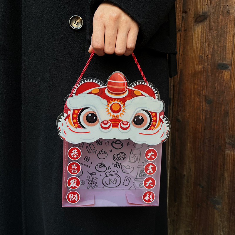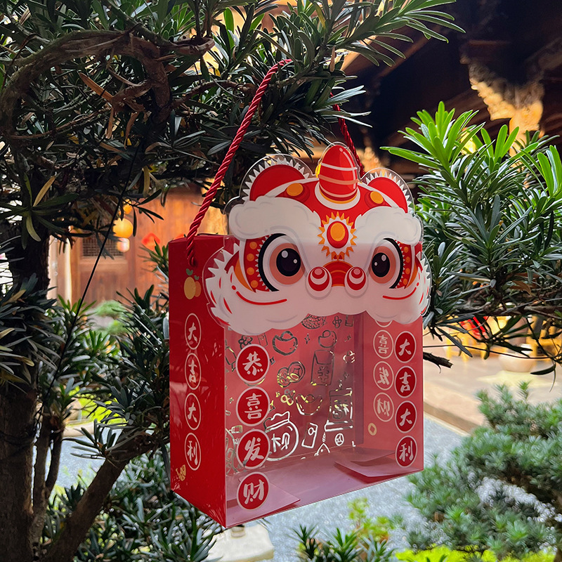 醒狮透明手提盒开运酥凤梨酥曲奇饼干糯米船包装新年春件拌手礼盒