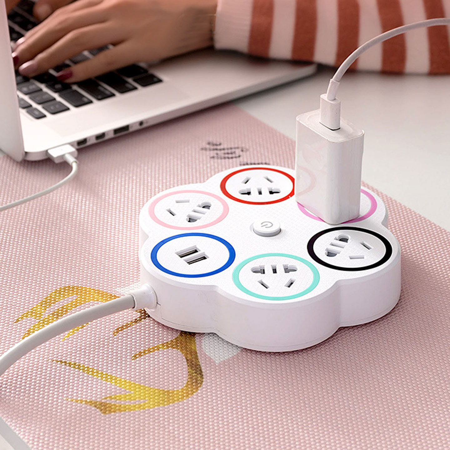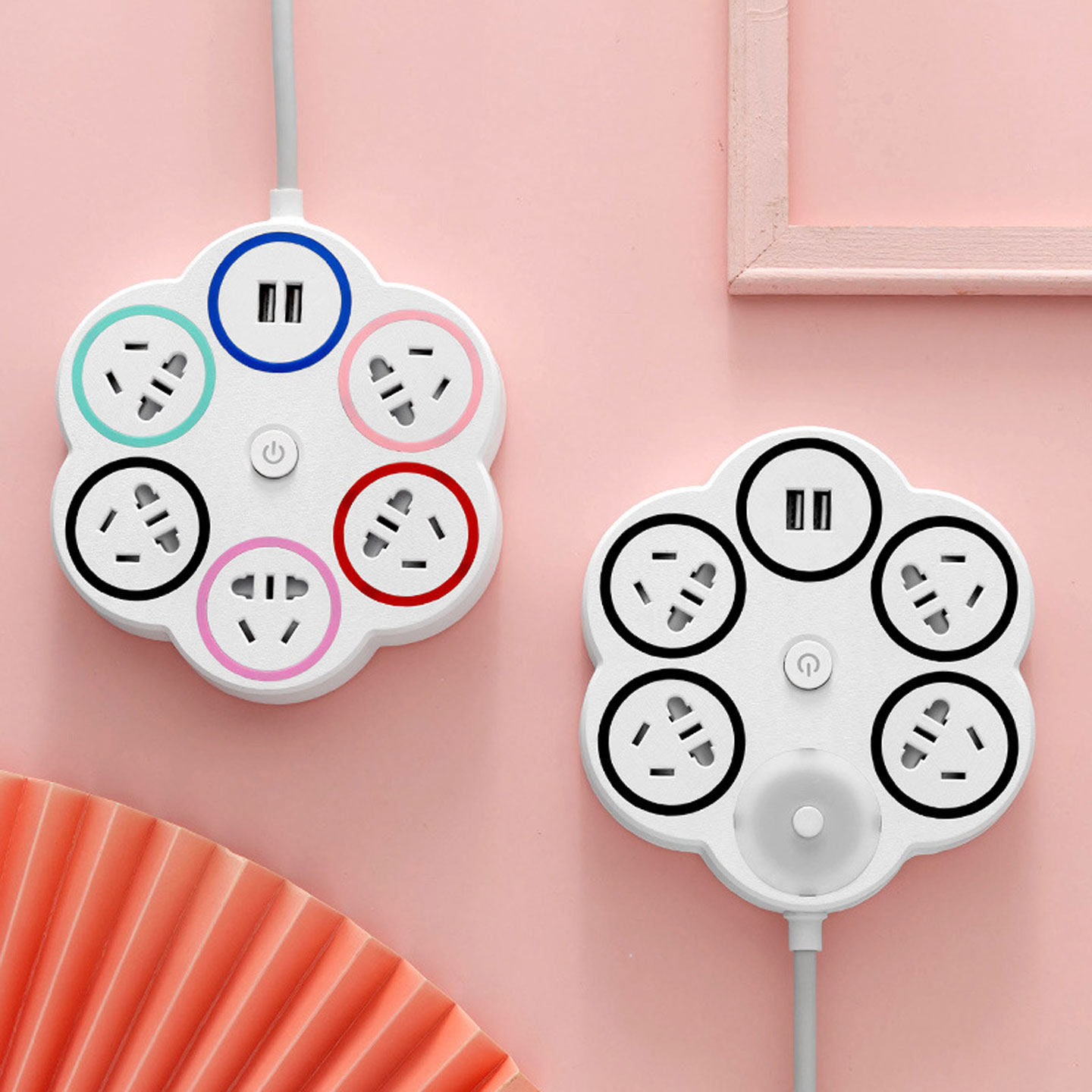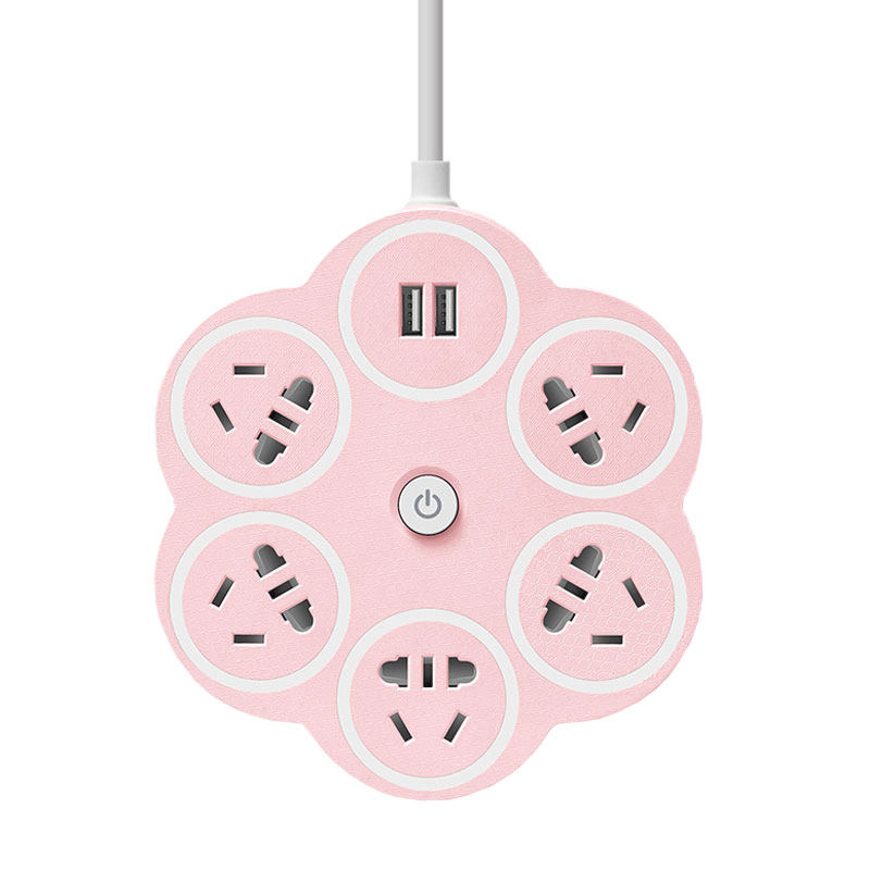 usb充电插座少女创意桌面插排高颜值插线板可爱粉色长线插板带灯