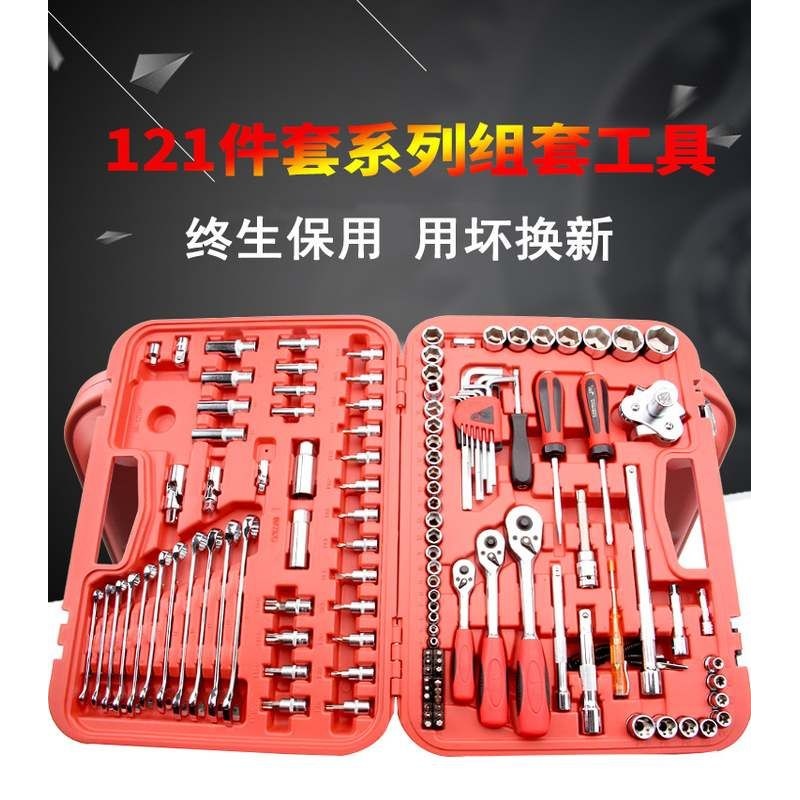 捷科工具121件汽修工具组套 多功能套筒棘轮扳手套装车载工具箱