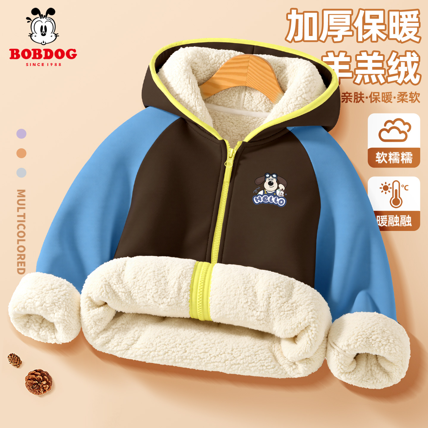 巴布豆儿童外套加厚一体绒2025新款男童羊羔绒上衣百搭潮男孩冬装