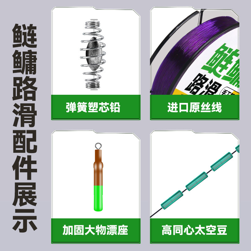 浮钓鲢鳙路滑线组浮漂套装矶竿滑漂远投专用弹簧主线组套装钓鱼线