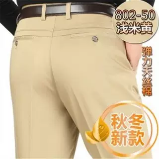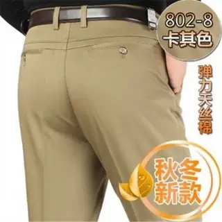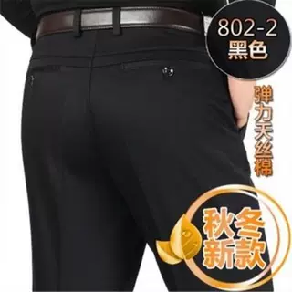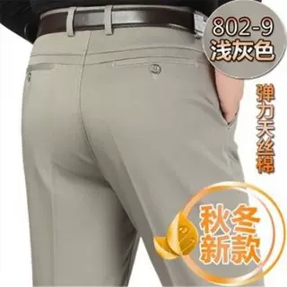 春夏新款男士休闲裤天丝宽松西裤中年商务休闲裤直筒高腰长裤子男