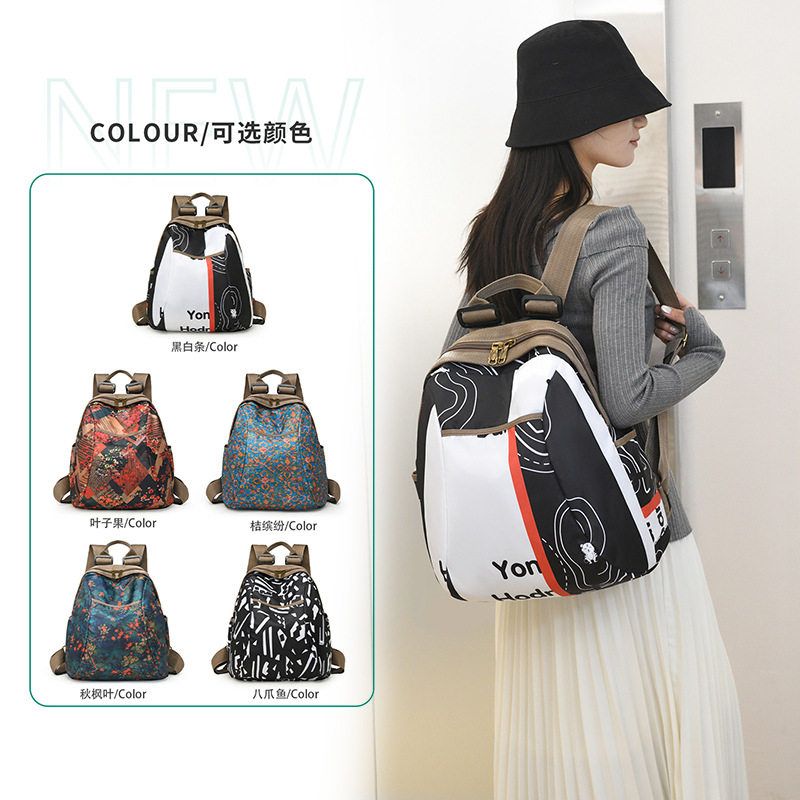 休闲双肩包时尚百搭女旅游轻便书包多功能牛津布背包大容量妈咪包