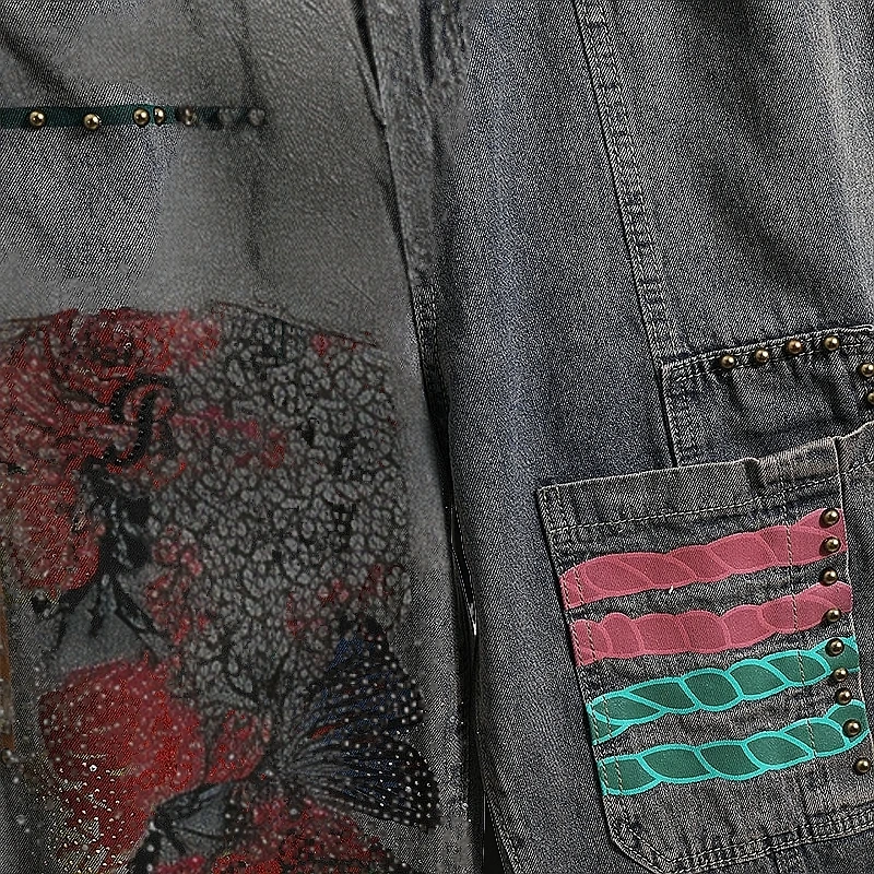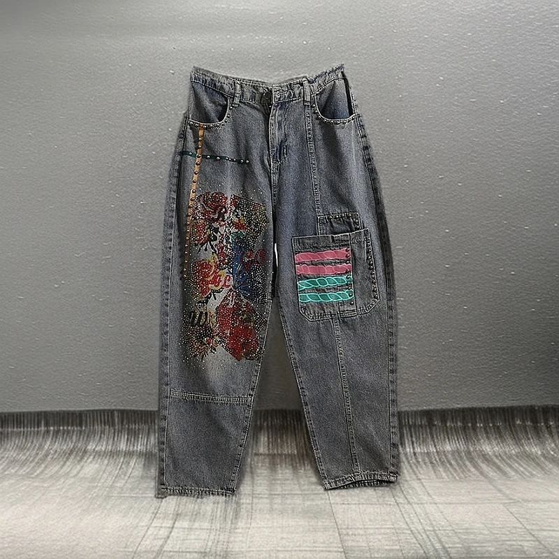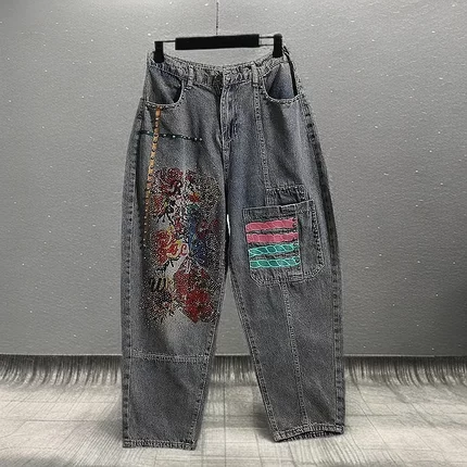 刺绣宽松显瘦哈伦裤女九分牛仔裤