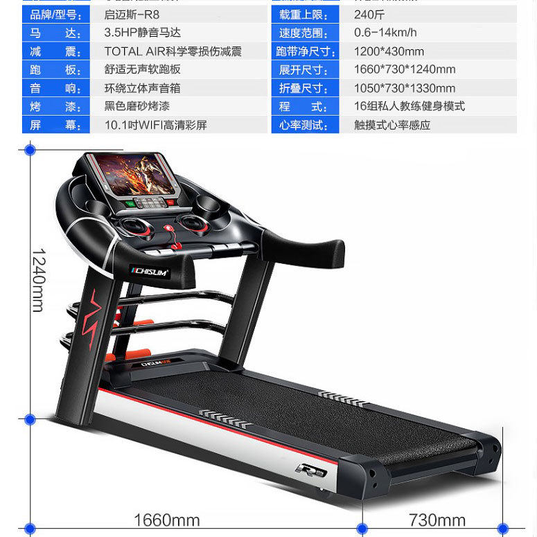 启迈斯MQ7lR8跑步机超大跑带家用多功能静音扶手有氧运动健身器材