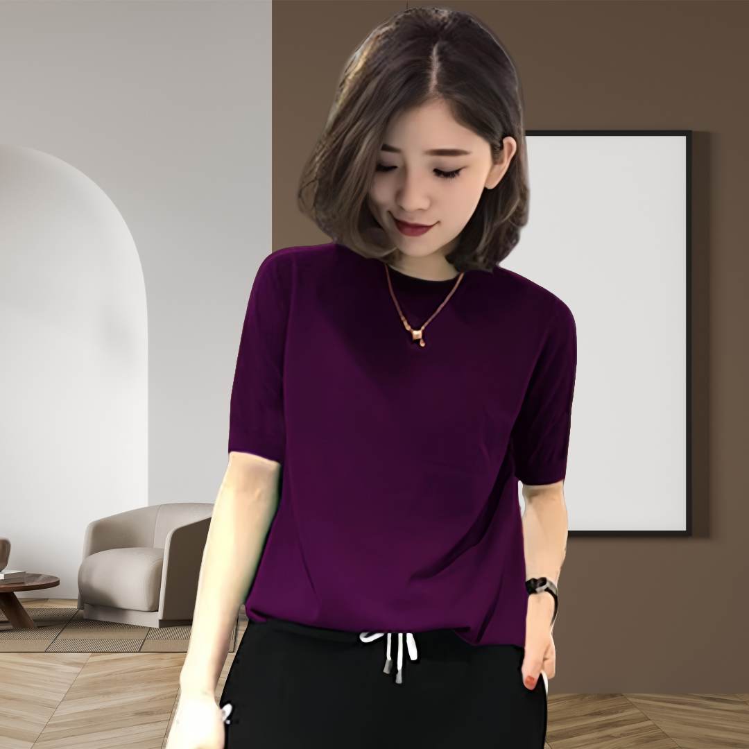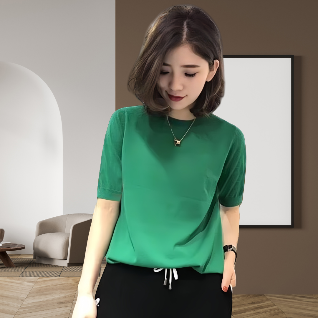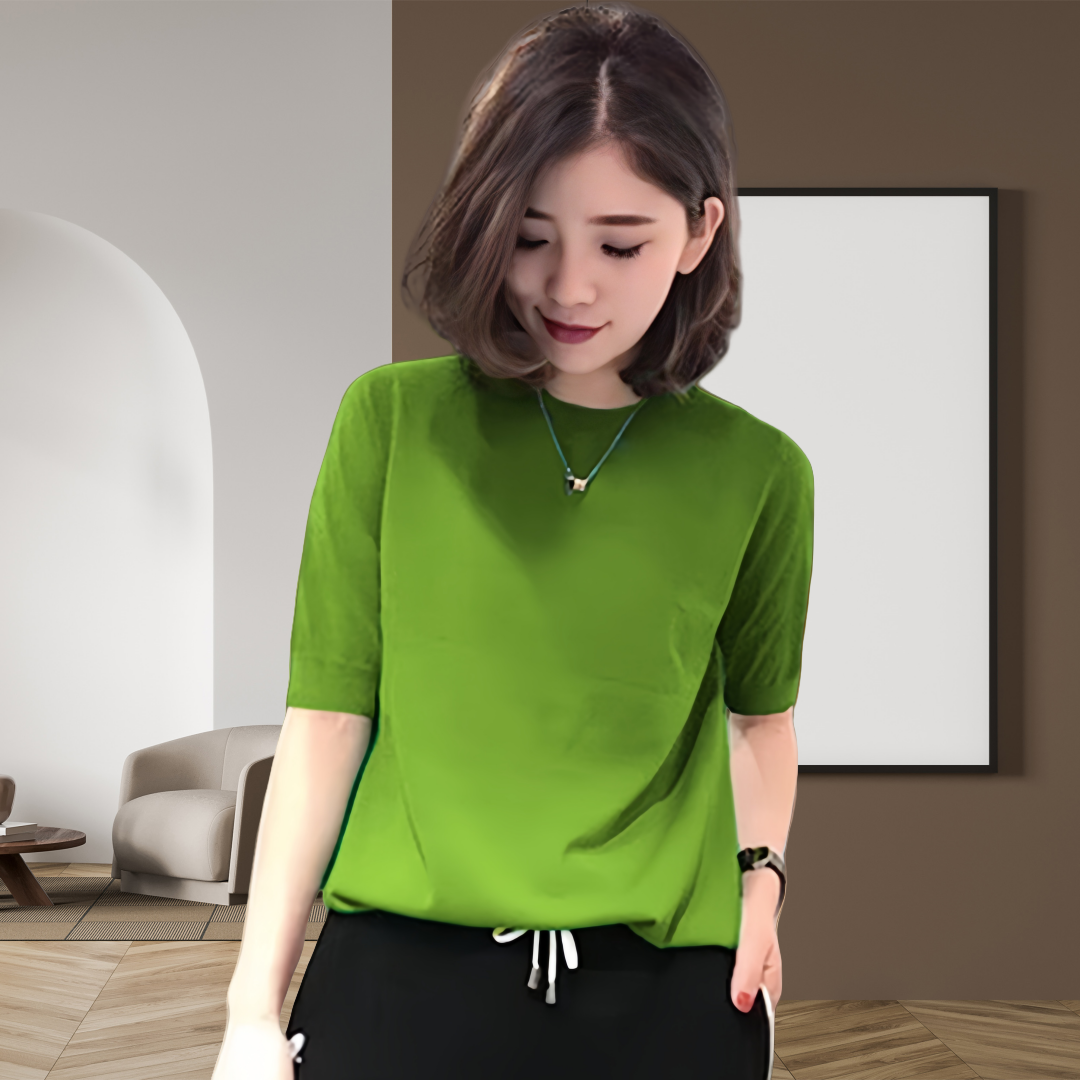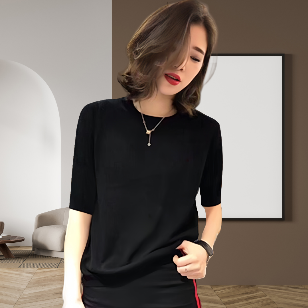 大码五分袖针织衫女半高领套头毛衣春秋内搭修身显瘦百搭打底上衣