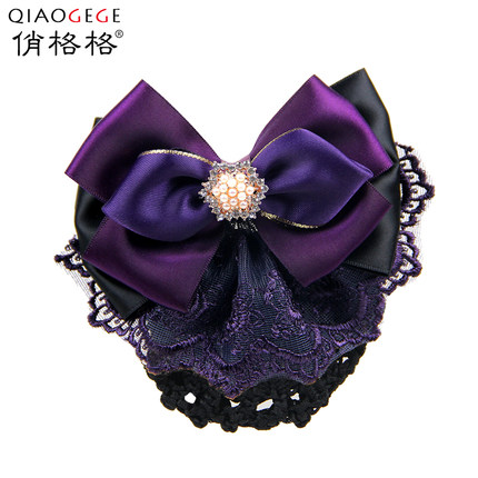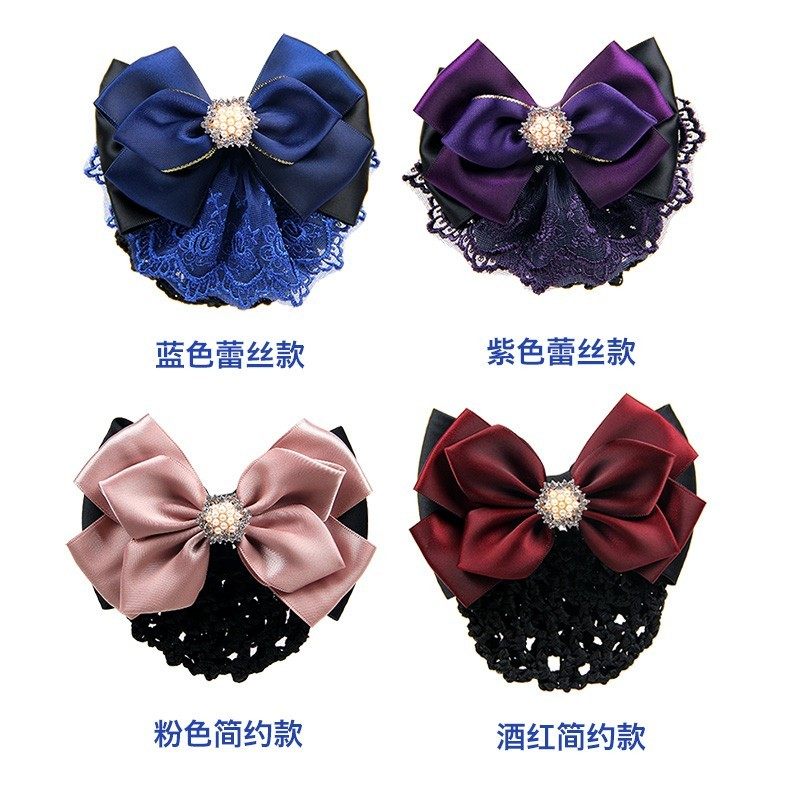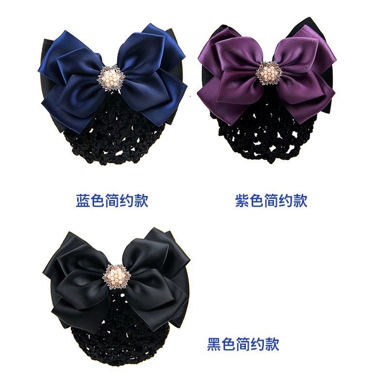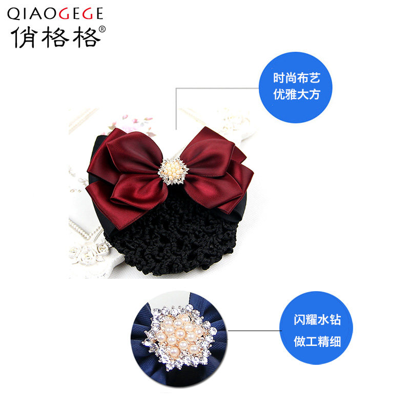 蝴蝶结职业头花水钻蕾丝发夹网兜发卡酒店物业女发饰网花发网头饰