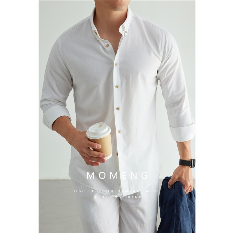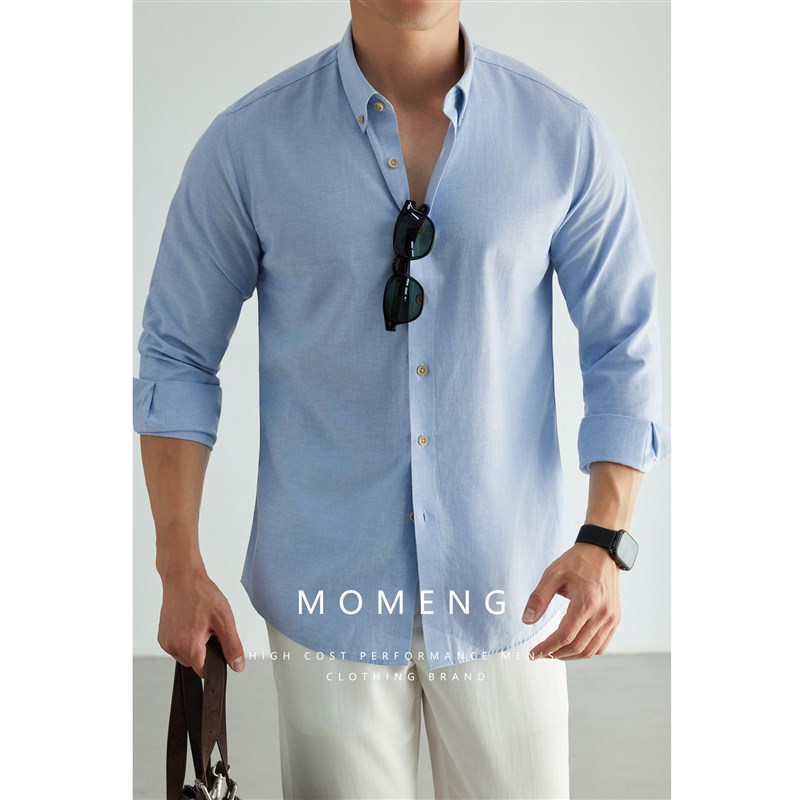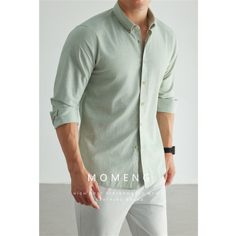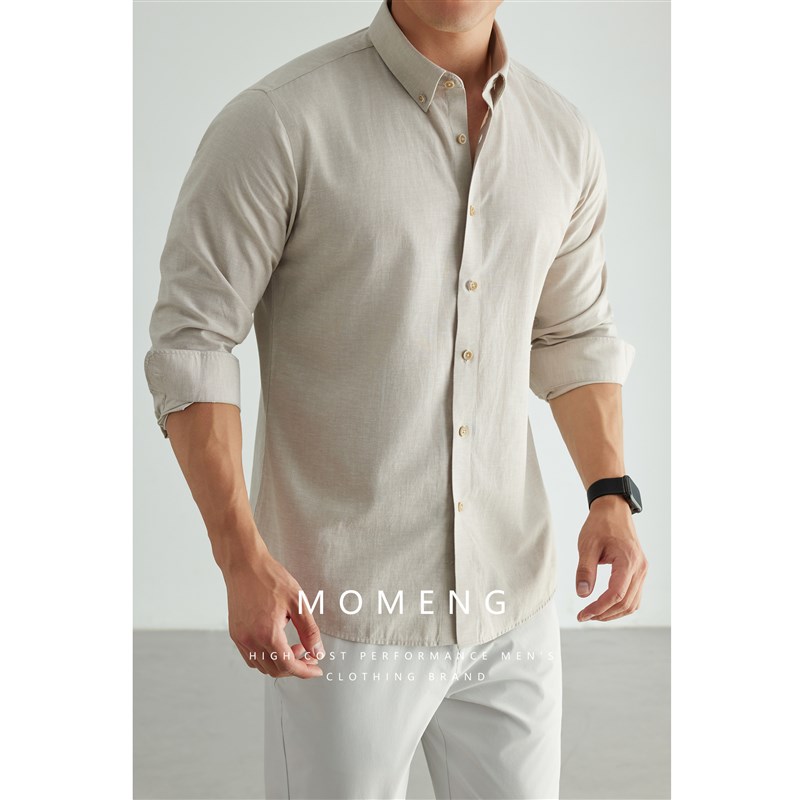 【亚麻混纺】夏季 简约一片领衬衫男商务绅士休闲长袖衬衣薄透气
