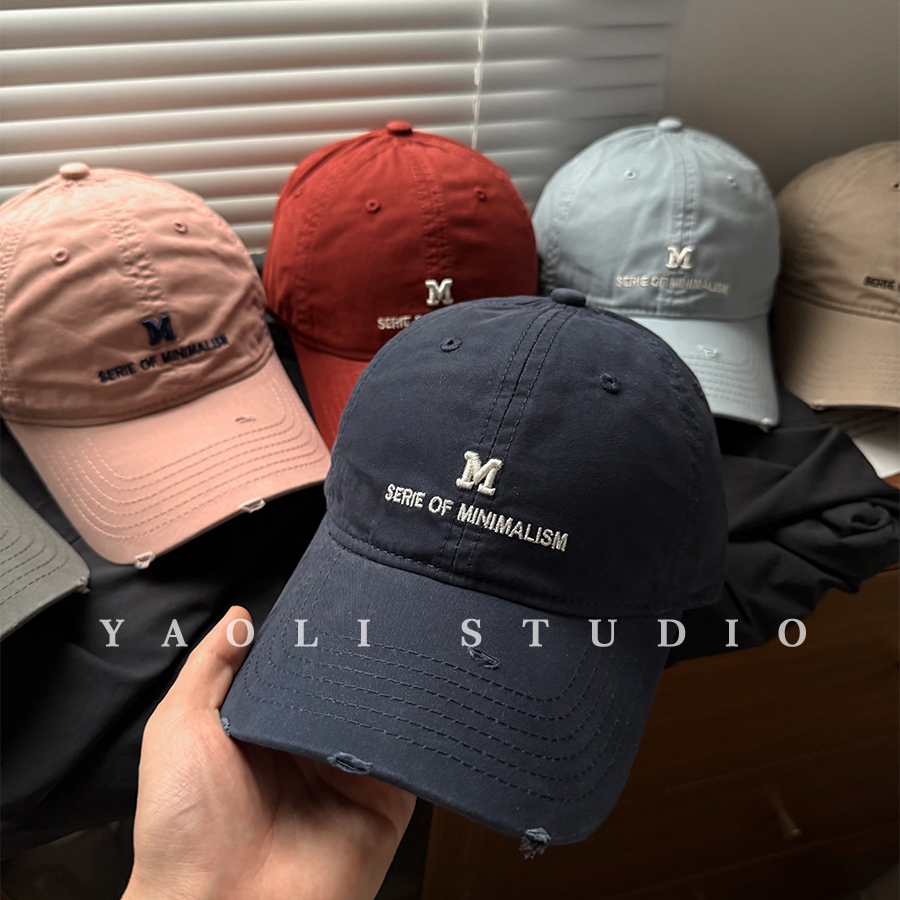 YAOLI刺绣M字母大头围显脸小棒球帽子女2025年春新款遮阳鸭舌帽韩