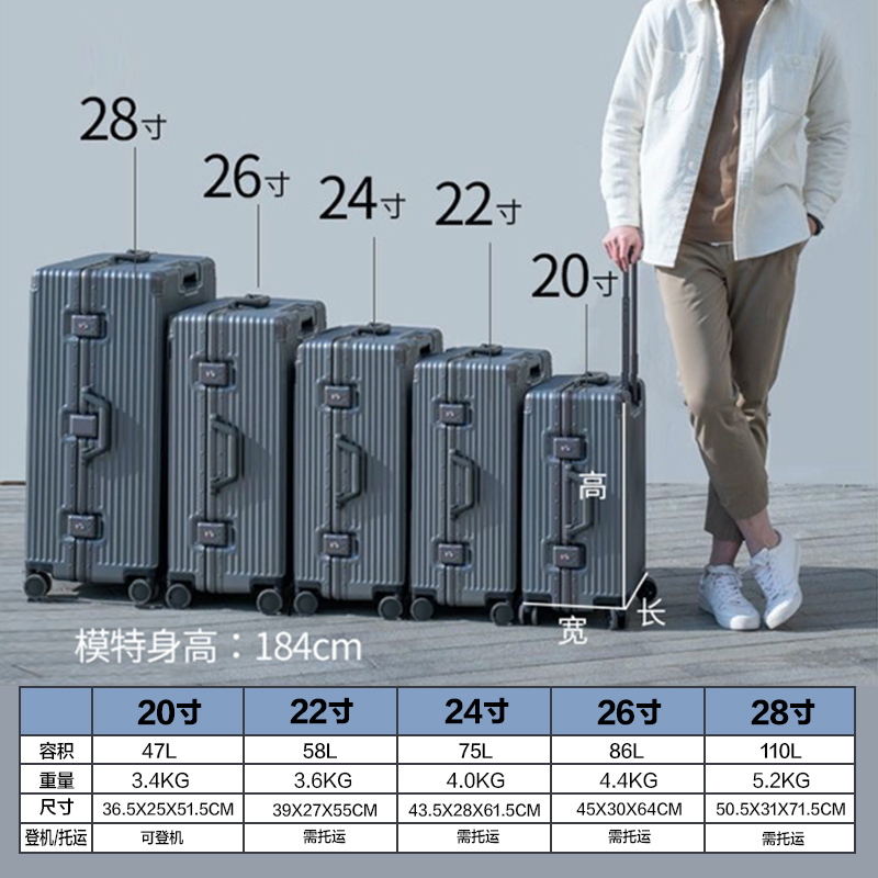 美国洛克兰铝框硬箱万向轮行李箱男女学生加厚超大容量旅行拉杆箱
