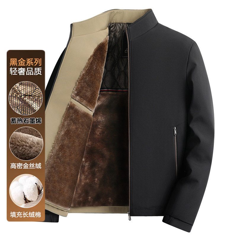 黑金爆款爸爸夹克立领外套2024冬装加绒商务休闲加厚中年男士